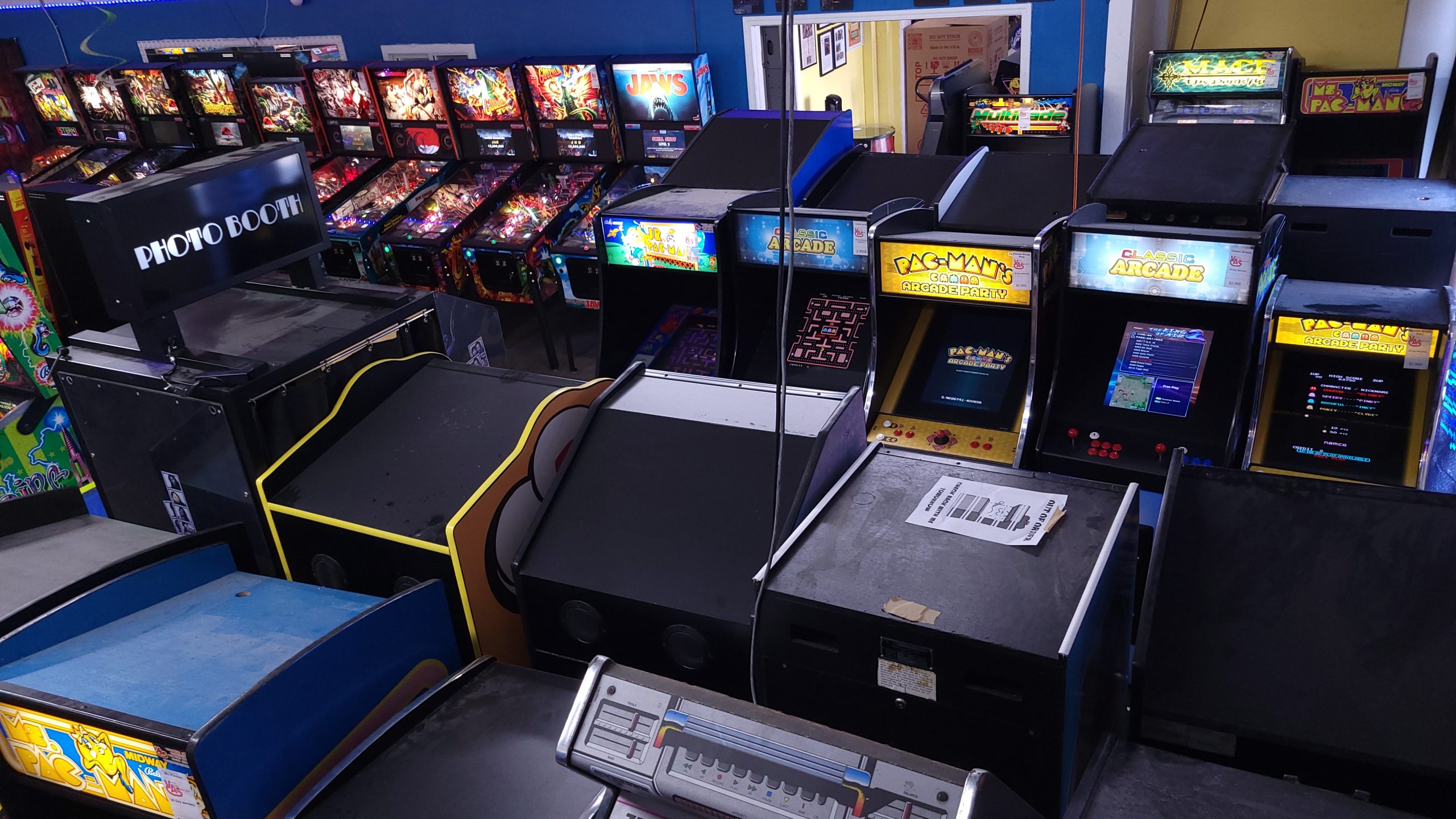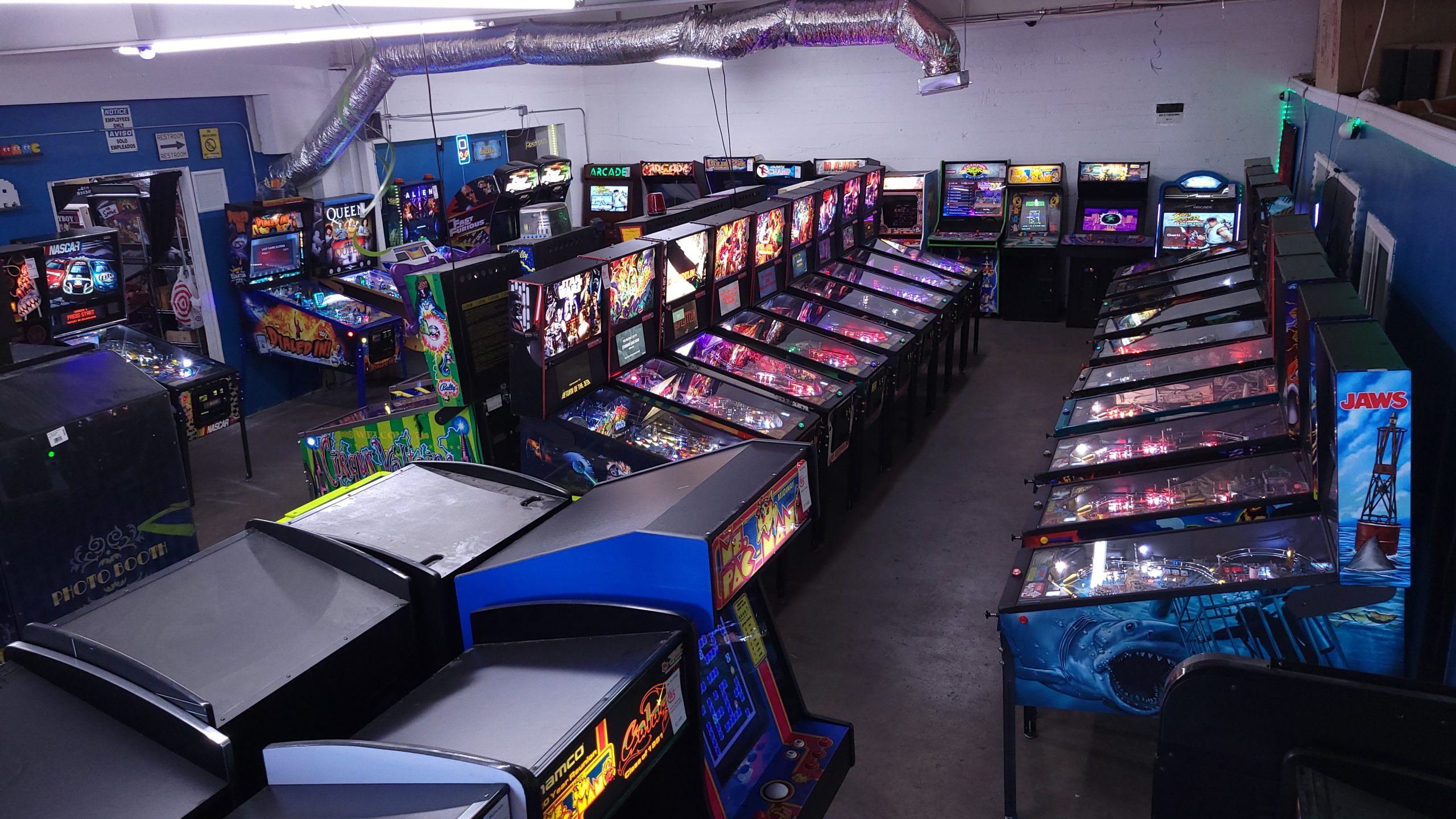 - Our 2,000 square foot showroom is all set for hosting your party or event. Over 50 people can all play at once on all of our machines!