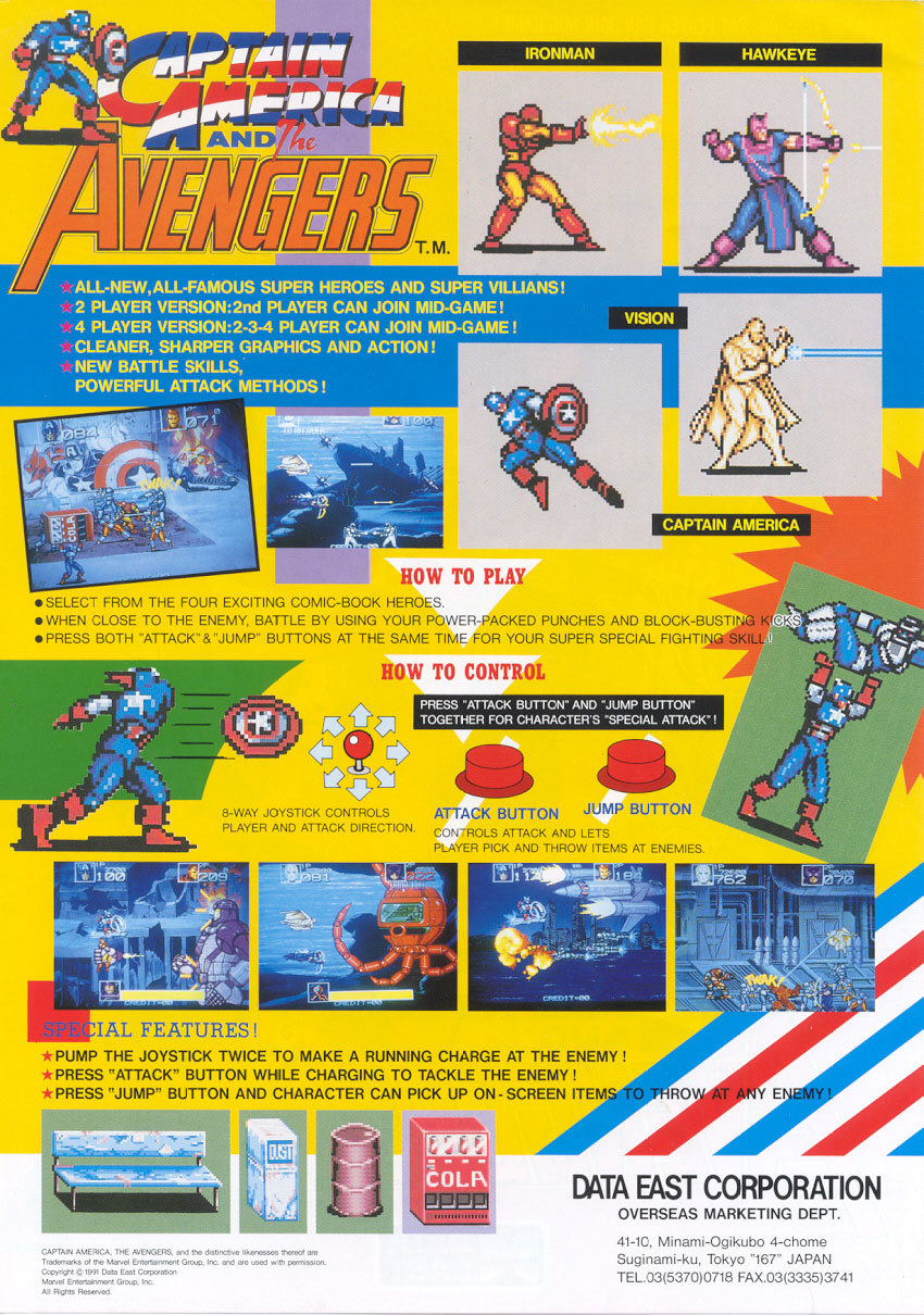In Captain America And The Avengers play as Captain America, Iron Man, Vision, or Hawkeye and battle Red Skull and his henchmen! “Avengers Assemble!”