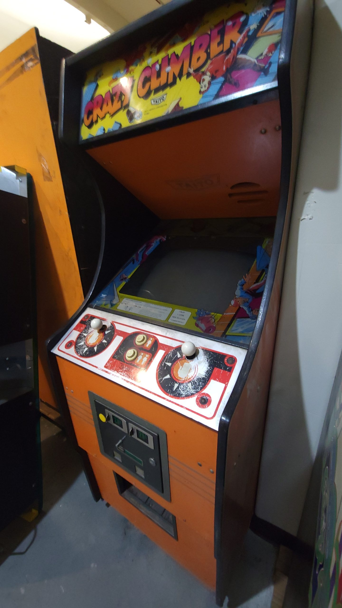 Here’s a Crazy Climber Arcade game for sale. This classic arcade game is very collectible. In this game the player takes the role of a daredevil who climbs up to the top of four skyscrapers. You use 2 joysticks to climb up buildings. People open their windows and drop all kinds of objects on you like flower pots, barbells and more. There is even a bird that you have to avoid it’s droppings.