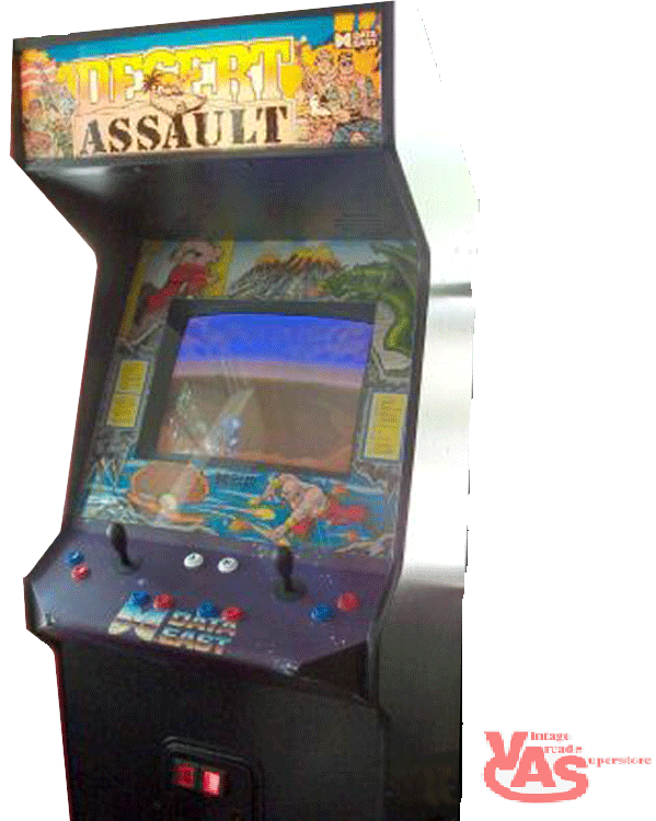 Here’s a Desert Assault Arcade game for sale. Desert Assault is a run and gun arcade game by Data East. In this game, up to four players control four soldiers holding machine guns and other projectile weapons, while fighting their way through the terrorist arsenal to take over the Persian War. This price listed is for a 2 player version. If you want the 4 player version add $400.