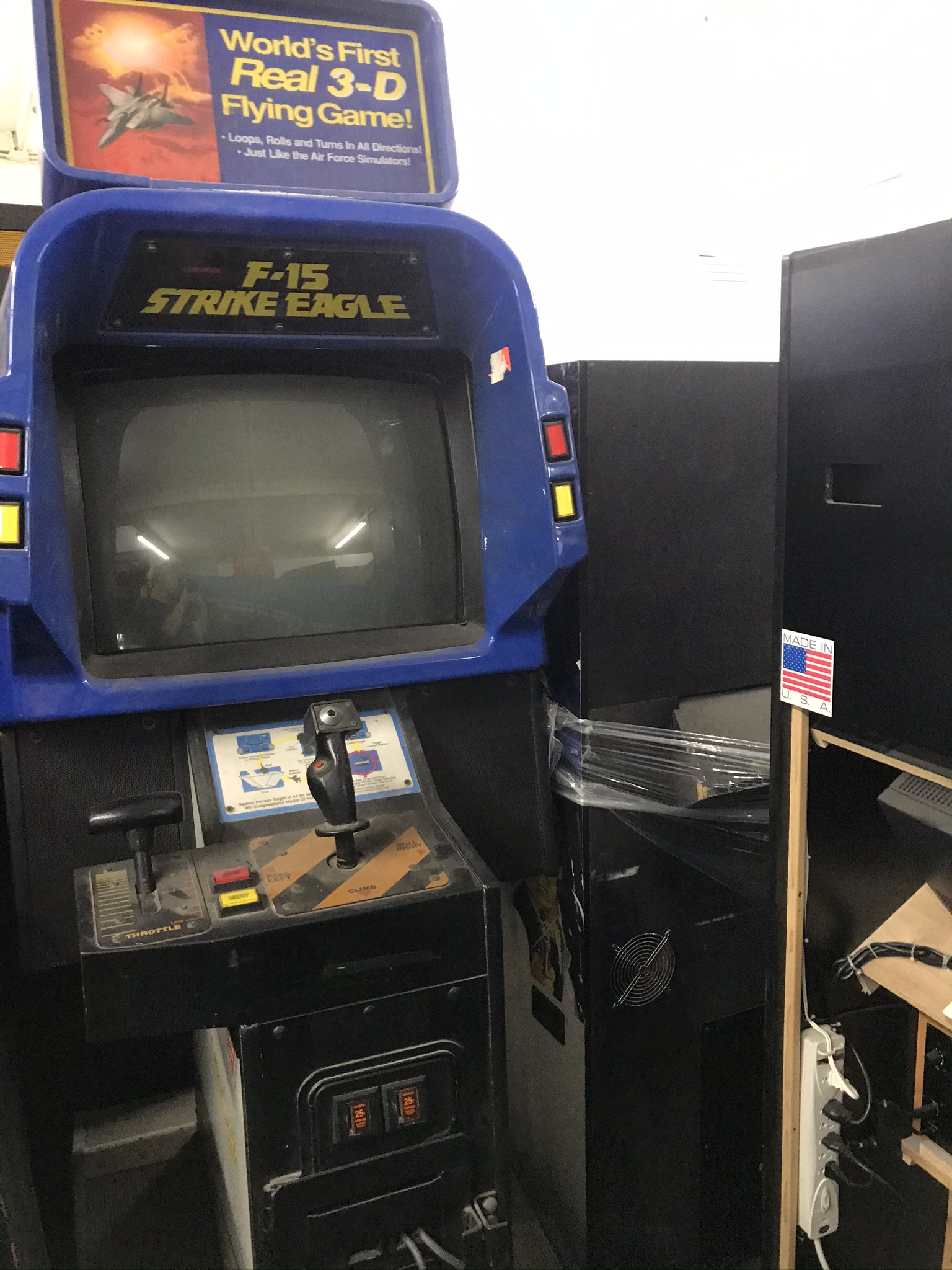 The arcade-exclusive installment of the Microprose air combat simulation series is called F-15 Strike Eagle. It is based on the F-15 Strike Eagle II home computer version, which utilizes hardware that is more advanced than what was typically accessible at the time.
