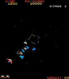 Here is a Gyruss arcade game for sale. This game is a space shoot em up game. It is kind of like a mix of Tempest and Galaga. You can move your ship in a circle around the whole screen and you shoot the enemy ships as them come up from the middle. This part is like Tempest. You can add extra firepower. It also has chance stages like Galaga. It has an incredible sound track with stereo sound. This game was designed by Yoshiki Okamoto. He only designed 2 games for Konami, Gyruss and Time Pilot. He then went to Capcom and made some of their most successful games like 1942, Final Fight and the Street Fighter series.