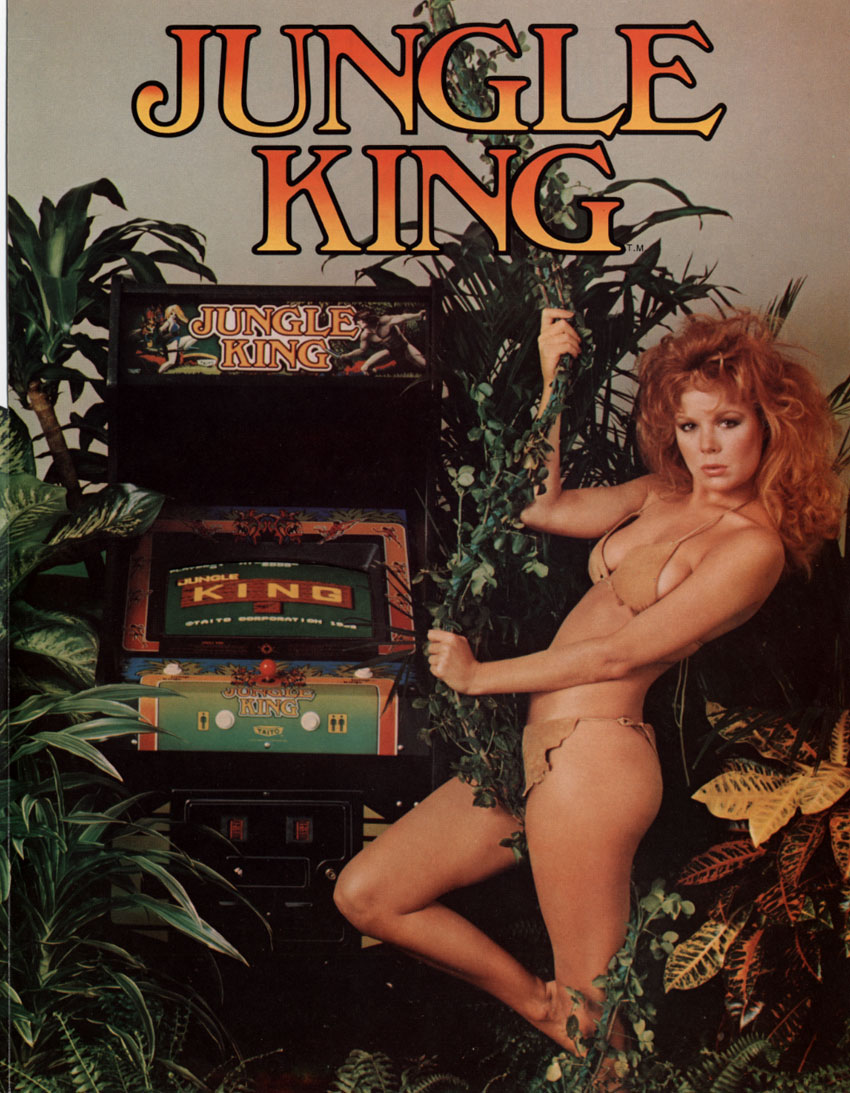 Here is a Jungle King Arcade game for sale. This game features a Tarzan looking character going through 4 levels to save the girl. Taito later changed the game to Jungle Hunt.