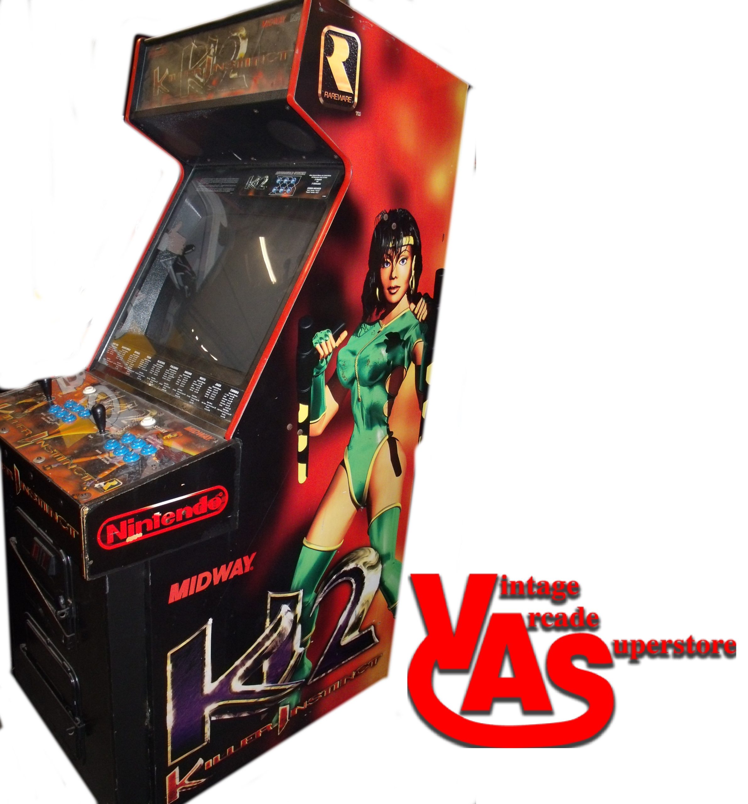Here’s a Killer Instinct 2 Arcade game for sale. Also known as KI2 is a 1996 arcade only fighting game developed by Rare, licensed by Nintendo, and manufactured by Midway. The story follows where Eyedol the main boss from the first KI was defeated and sparked a time warp, transporting some of the combatants back in time and allowing the demon Lord Gargos to escape from Limbo.