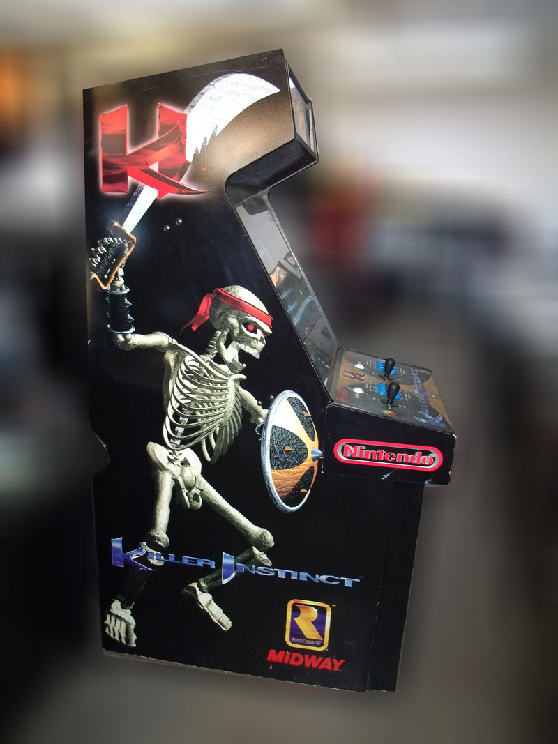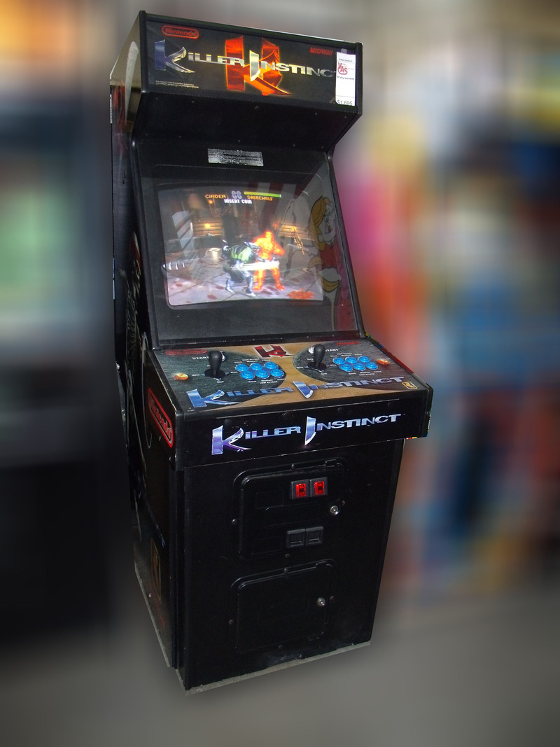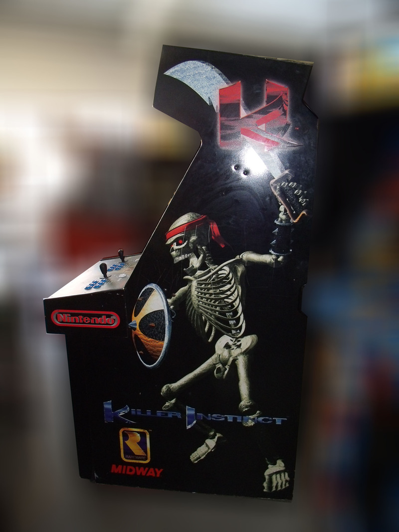 Here is a Killer Instinct Arcade game for sale. Choose your champion and fight warriors and monsters alike in this brutal arcade fighting game, Killer Instinct. Developed by Rare and licensed for release by Midway in 1994, the Killer Instinct arcade game for sale followed in the vein of the Street Fighter and Mortal Kombat fighting genre. It was hugely successful and featured many memorable characters, such as the skeleton with a cutlass and a velociraptor mutant. Players fight to deplete their opponents two health bars and can perform various combos to cause further damage. You can purchase your very own original Killer Instinct! This game comes in the original arcade cabinet with all of the original artwork and the original circuit board. We can also fully restore this game with all new artwork, including full sideart for an additional $900.