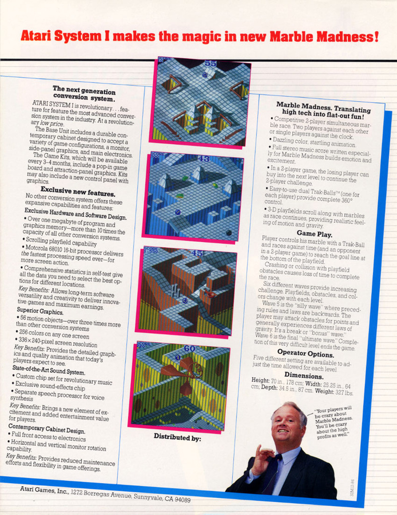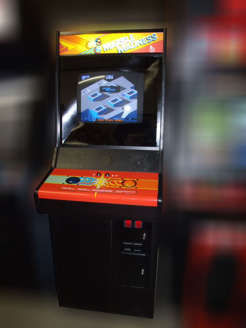 Here is a Marble Madness arcade game for sale. This is made by Atari. This is the first game for Atari’s system 1. It uses 2 trackballs and you control your marble to reach the end of the maze.