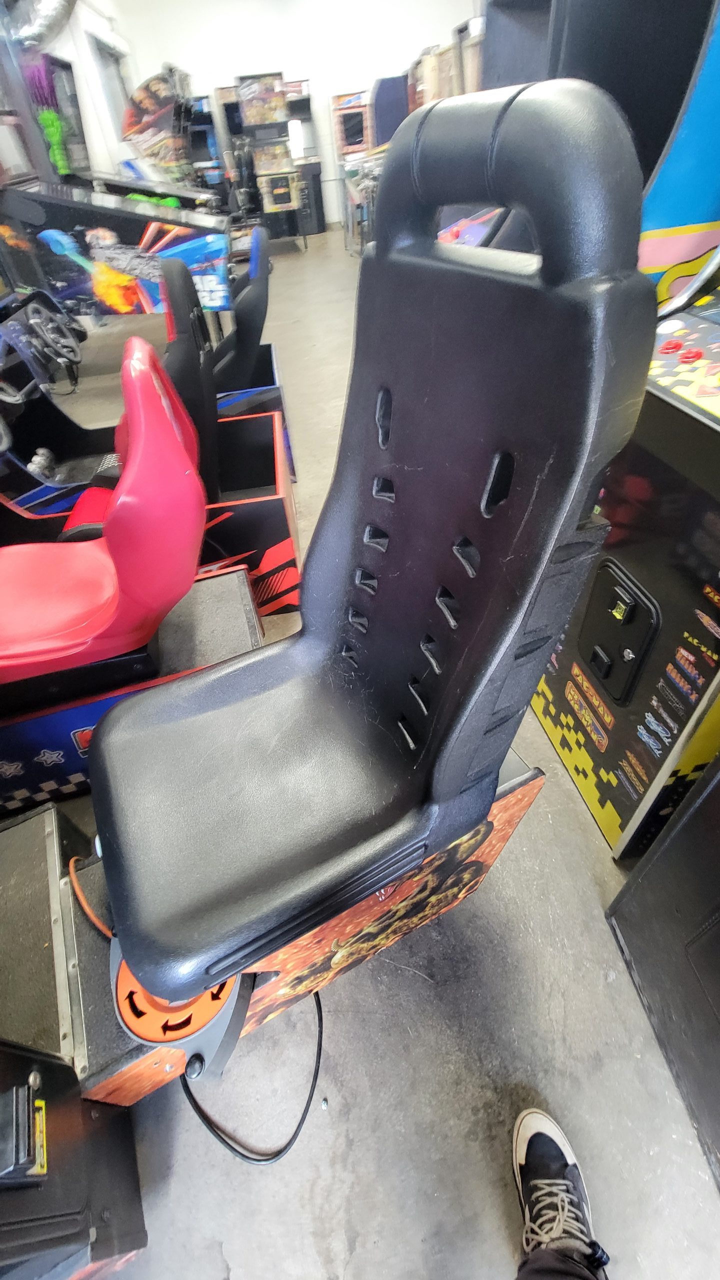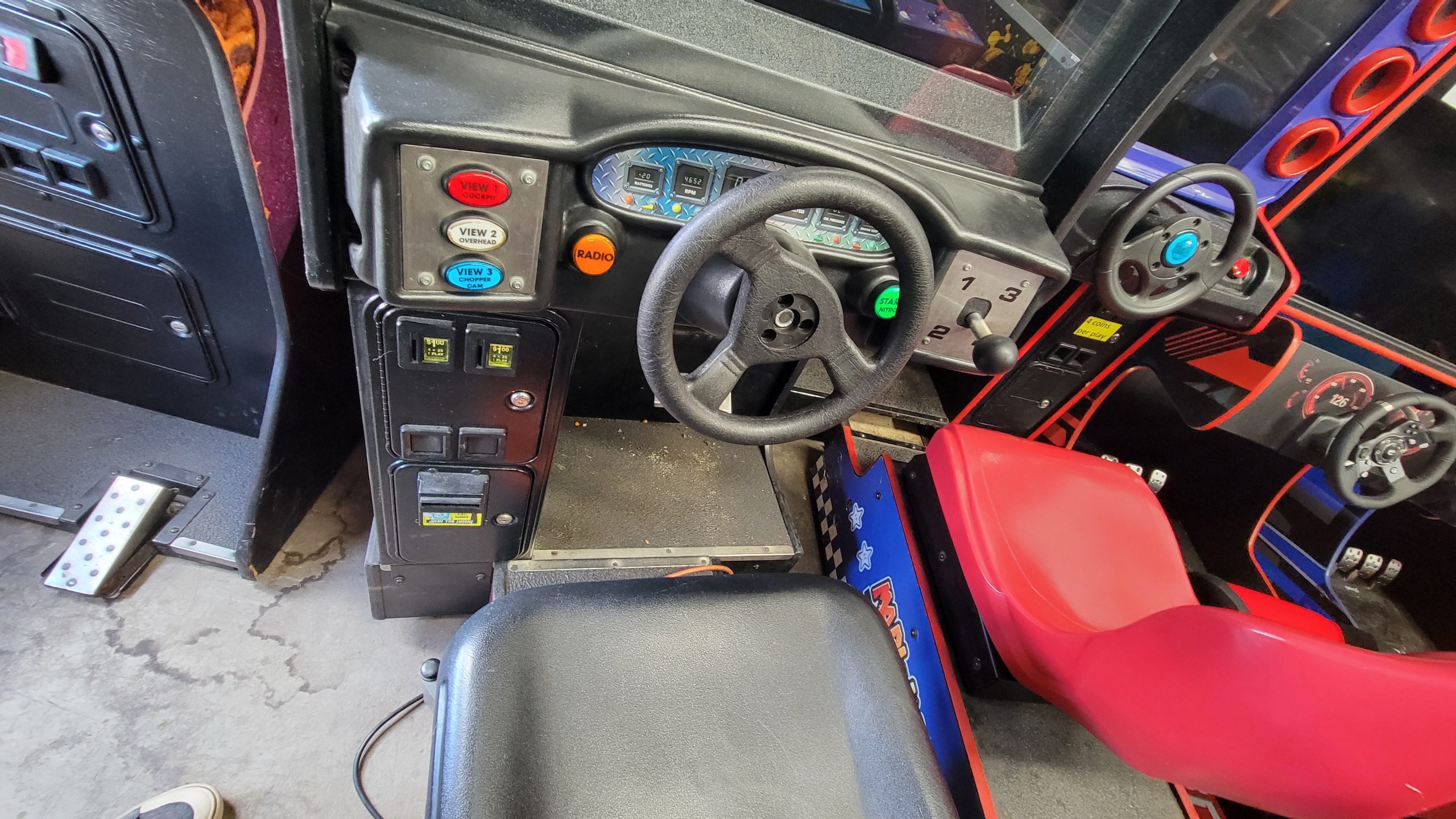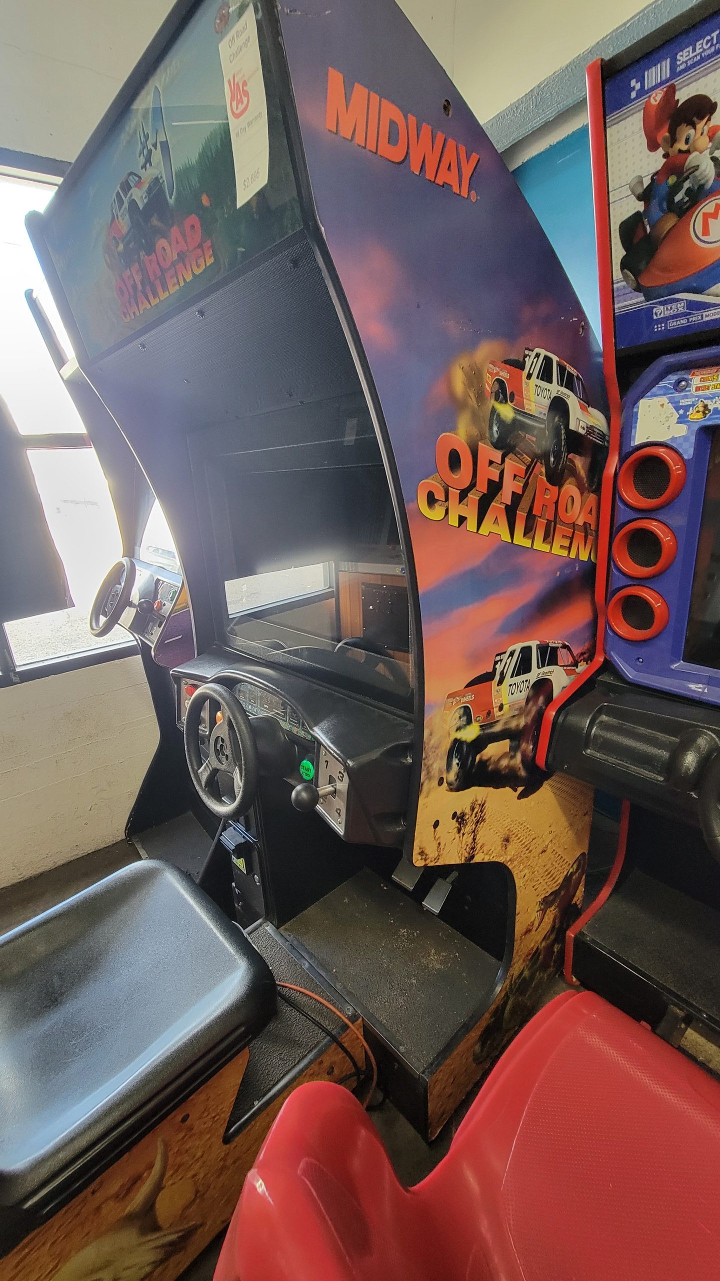 Off Road Challenge is a sit down off road driving game.  This game came out in 1997.  It has the same hardware as Cruis’n World.  You can link up to 4 games for competitive play. This is cabinet 64″ Long, 30″ wide, 78″ in height. We can upgrade the game to a 27″ lcd for $350 or a 32″ LCD for an additional $500.00.