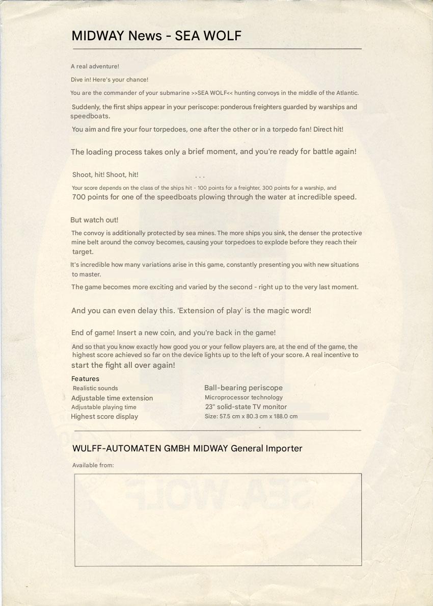 Sea Wolf Arcade Game