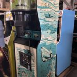 This game uses a blue overlay to simulate water. The monitor sits flat inside the cabinet facing upward, and a mirror reflects the image toward the player. If you were to look at the screen directly, everything would appear backwards.