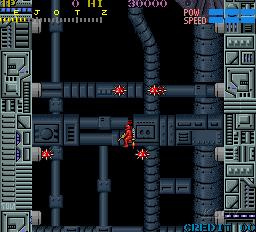 The direction of scrolling changes after defeating each boss. Sections A through E scroll right to left, F through J scroll top to bottom, etc.