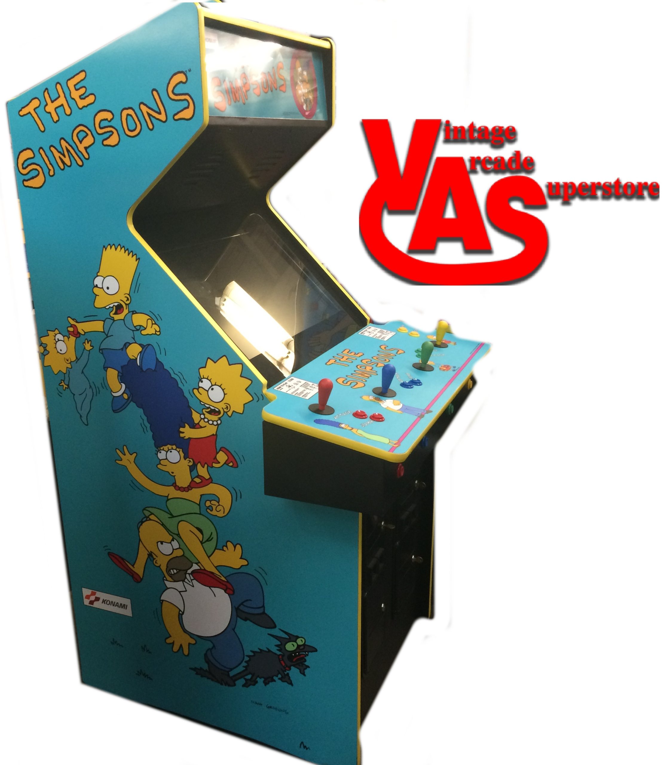 Here is a Simpsons arcade game for sale. It comes with black sides. You can get the game fully restored with new side art and and a new control panel overlay for an extra $1000. The Simpsons arcade game is one of the classic Konami 4 player arcade games. This is based on the Simpsons TV show which is still popular. This was one of the most successful arcade games from the 90’s. In the Simpsons arcade game for sale, you can choose from Bart, Marge, Homer or Lisa to fight off the bad guys. You can upgrade the monitor to a 27″ LCD for an extra $350. In this arcade game, you walk to the right and punch the enemies. It has bonus rounds also.