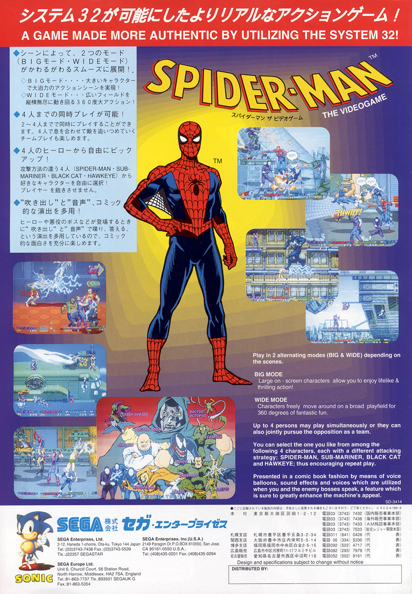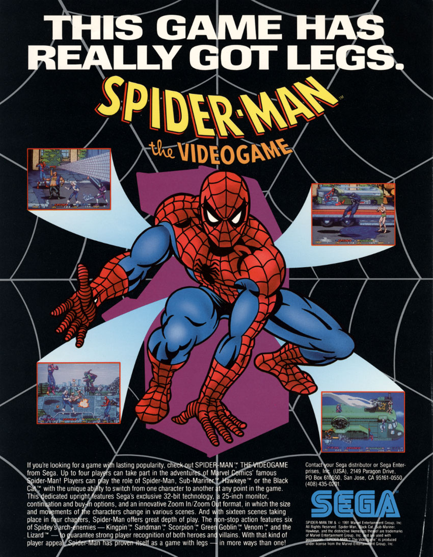 Spiderman the videogame is a 1991 released arcade game based on the cartoon and comic book series “Spider-man.”