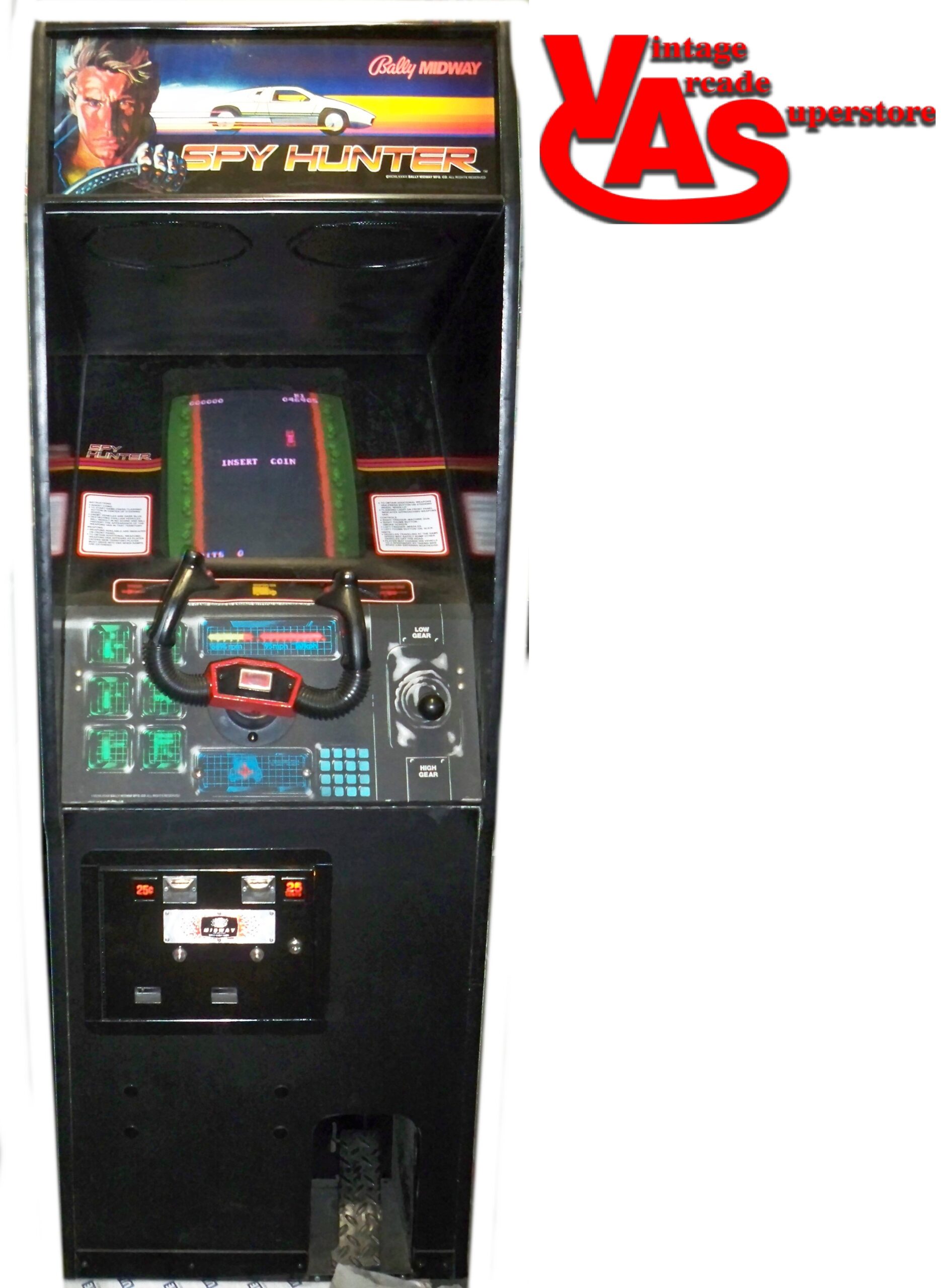 Here is a Spy Hunter Arcade game for sale. In this 80’s arcade game you are becoming a spy like James Bond. You drive a car that can relase Oil Slicks, Smoke Screens, Missiles that can shoot a helicopter from the sky. You of course have a machine gun too. A great and fun classic driving arcade game. The photos below show the condition the Arcade game for will come in.
