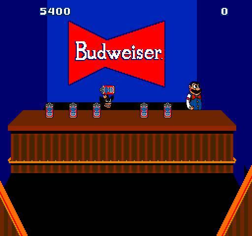 This is a Tapper arcade game for sale. This is a very collectible video game. This is the Budweiser version with the rail on the bottom. This game was featured in the movie Wreck it Ralph. The object of the game is to serve beer to your customers. If their glass gets to the end of the bar and falls off, you lose a life. You can collect tips and watch dancing girls.