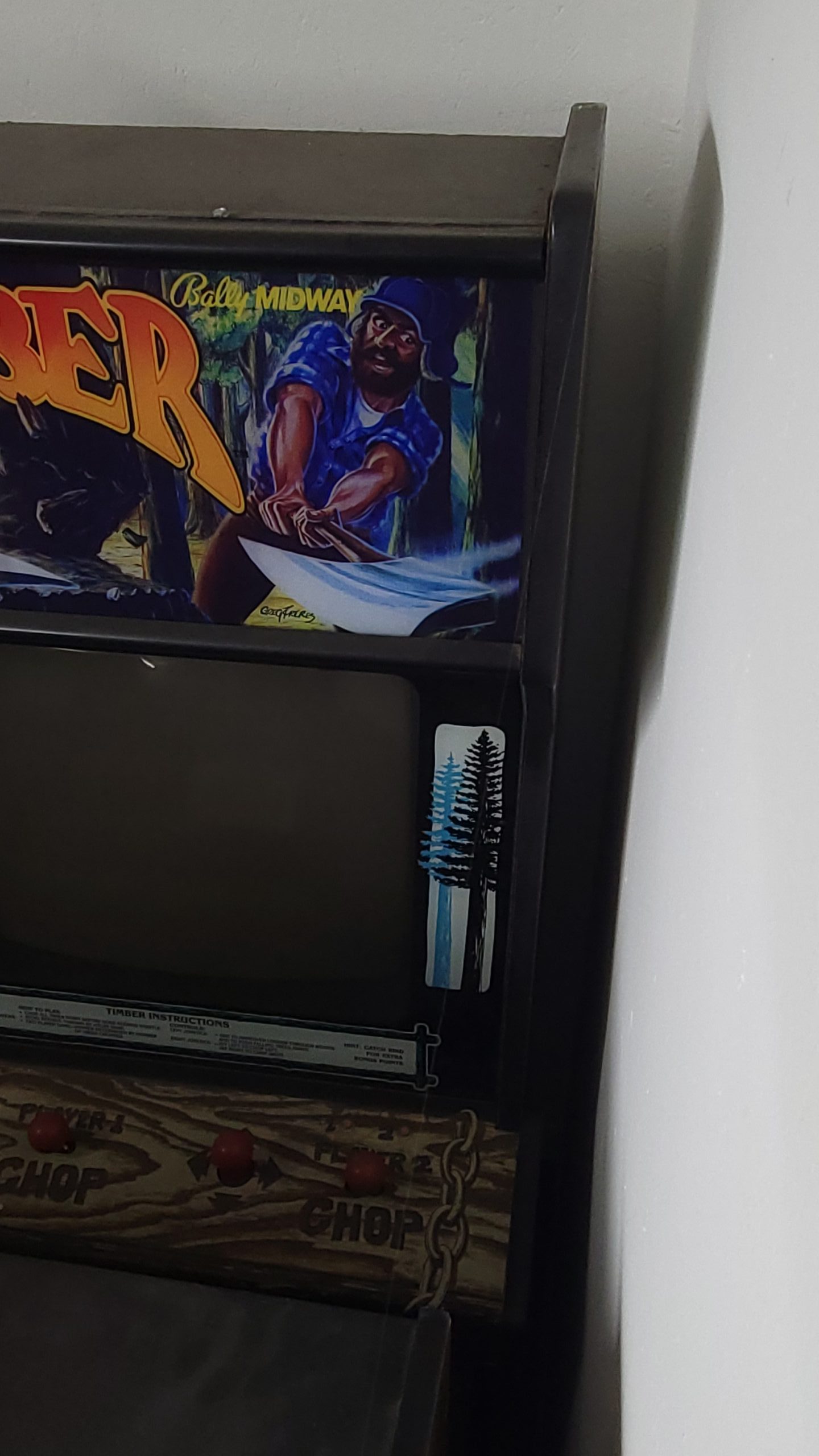 Here’s a Timber arcade video game made in 1984 by Midway. There were very few of this game produced. Many of them got converted to Root Beer Tapper by the Midway factory. The object of the game is to cut down trees before the work clock runs out without getting hit by bees, bears and other things.