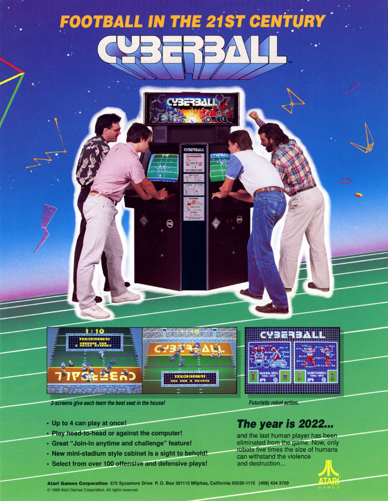 Here is a Tournament Cyberball 2072 arcade game for sale. This is the 4 player arcade game with 2 monitors. This is the more popular Tournament version. This updated version has more plays than the original, new robots and new teams. This is the game where you play football in the future, the year 2072 with robots. This is a very collectible arcade game. You can upgrade the monitor to LCD’s for an extra $450 for both screens.
