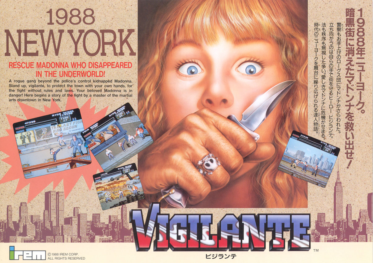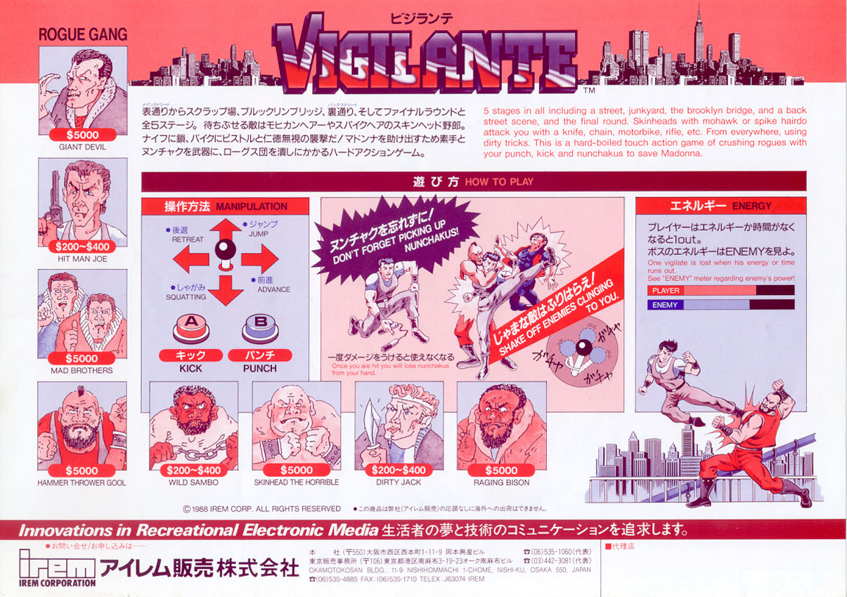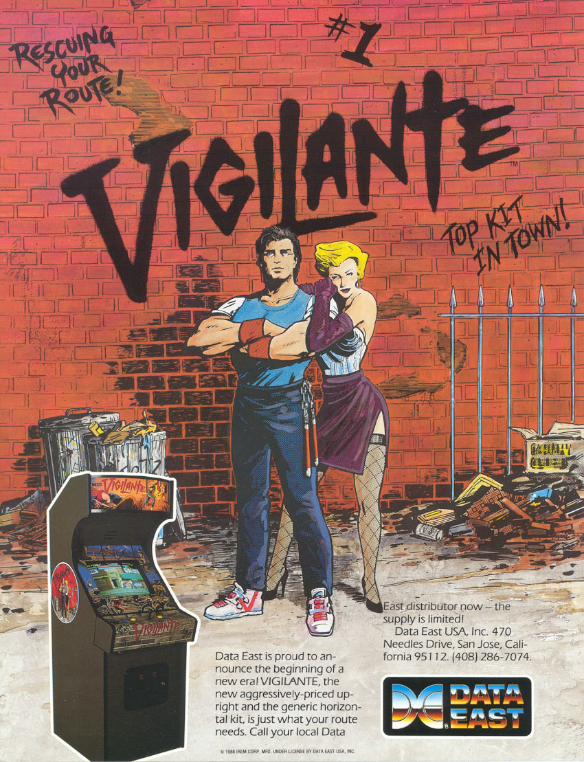 Vigilante Arcade game. This is a scrolling punch and kick game from Irem. Try it at Vintage Arcade Superstore today!