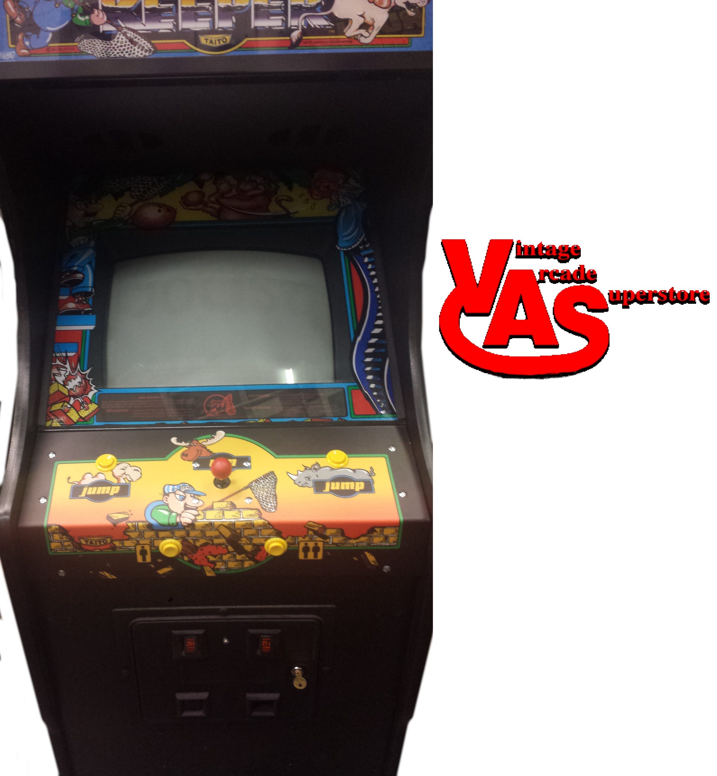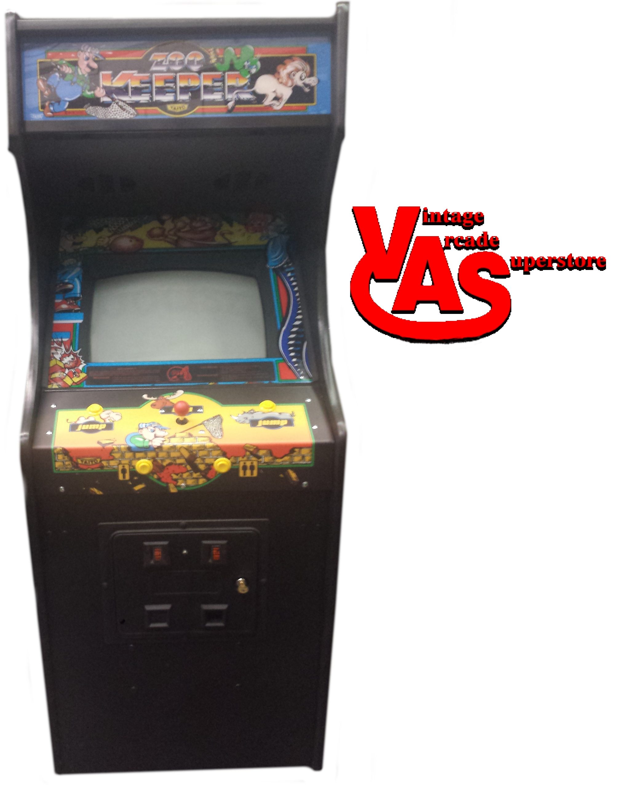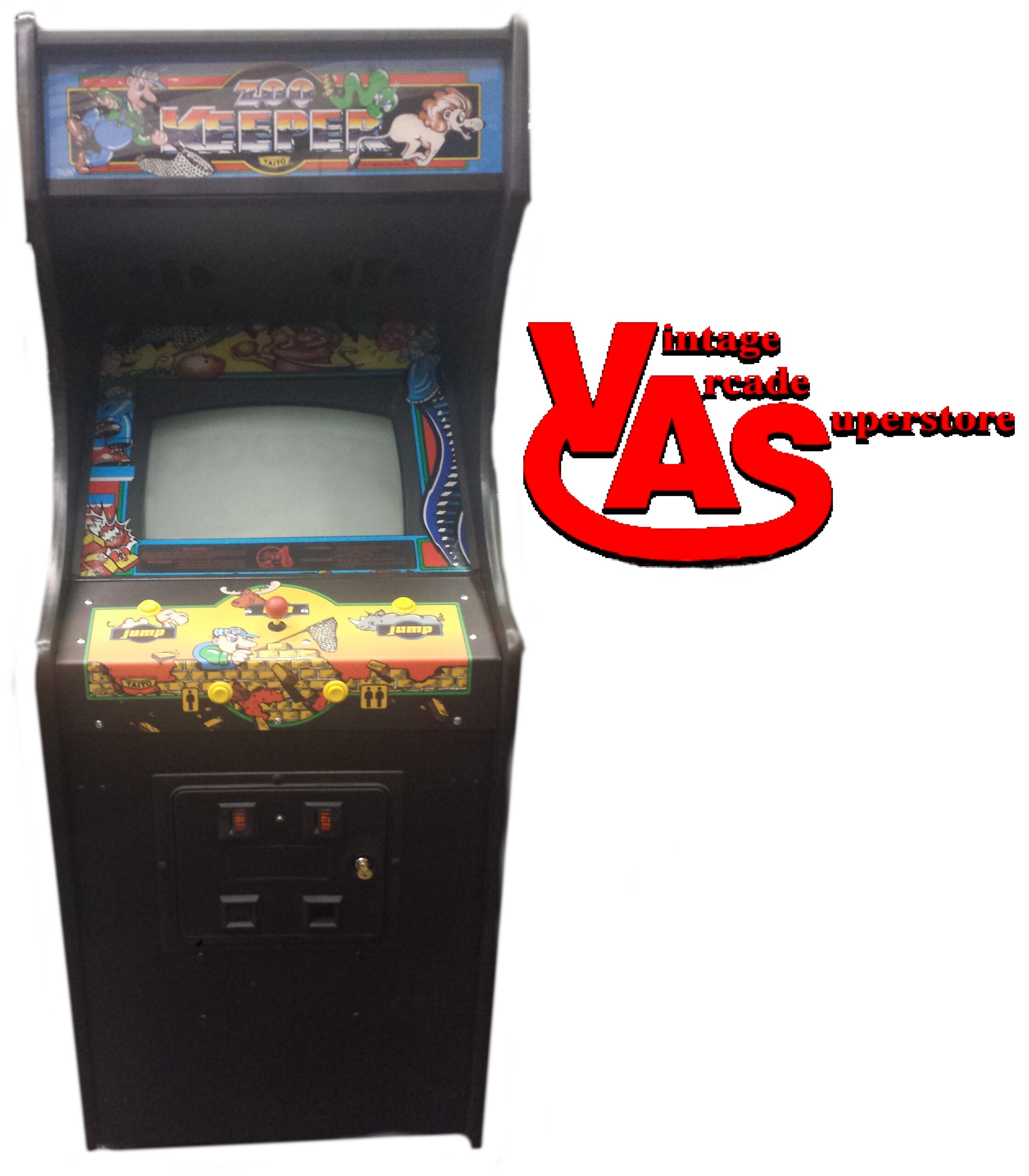 Here’s a Zookeeper Arcade game for sale by Taito. In this classic arcade game, you control Zeke the zookeeper who must rescue his girlfriend Zelda from the animals at the zoo. In this Arcade game the Zoo Keeper has three different types of stages. In the zoo stage, Zeke must run around the edges of the screen to build up the zoo’s outer wall and keep the animals from escaping as they try to break through it from inside.