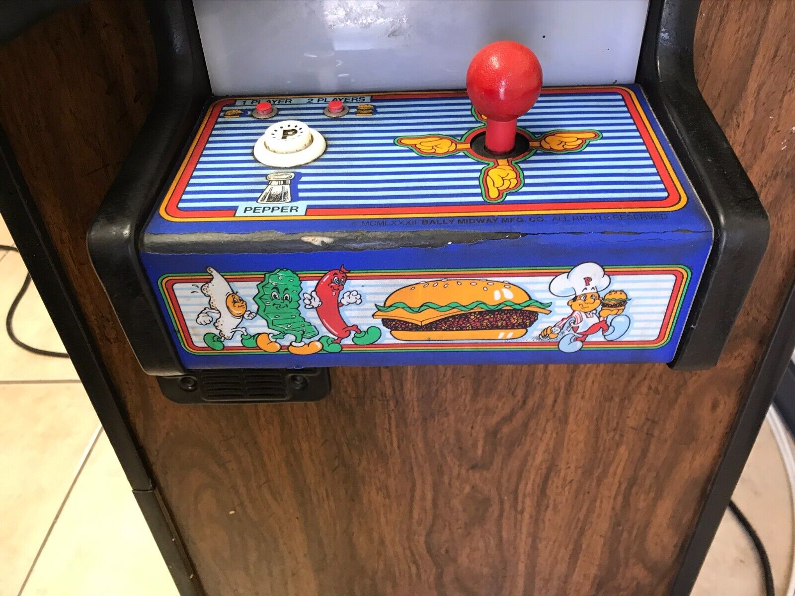 Peter Pepper the chef moves around the screen walking over the parts of a hamburger. As each item is walked over it drops to the level below. Armed with pepper he can throw on his enemies, he must avoid Mr. Hotdog, Mr. Egg, and Mr. Pickle. Bonuses appear in the forms of ice cream, coffee, and french fries. This game has 2 player capabilities.