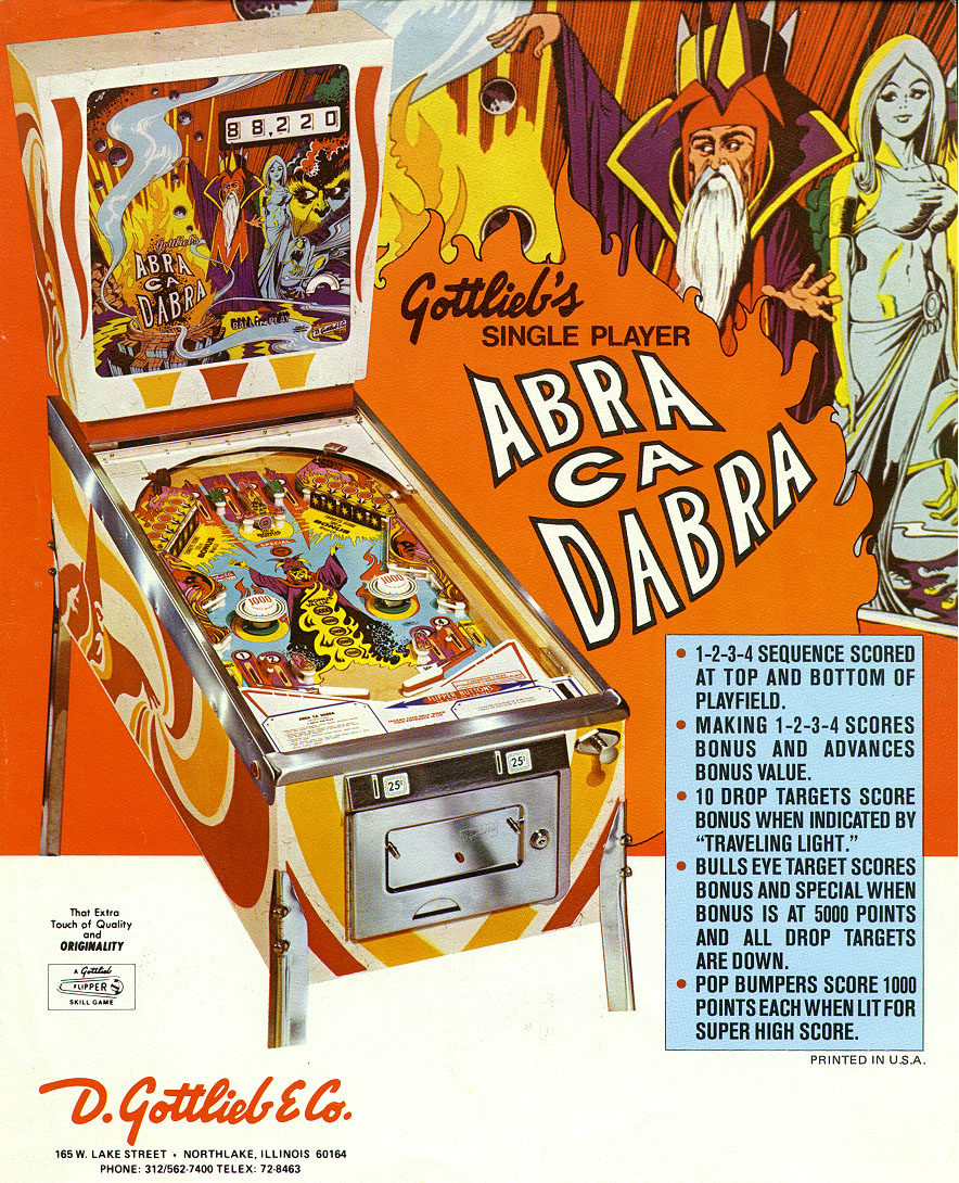 Come check out this Abra Ca Dabra pinball with a magic theme made by the pinball company Gottlieb at Vintage Arcade Superstore today!
