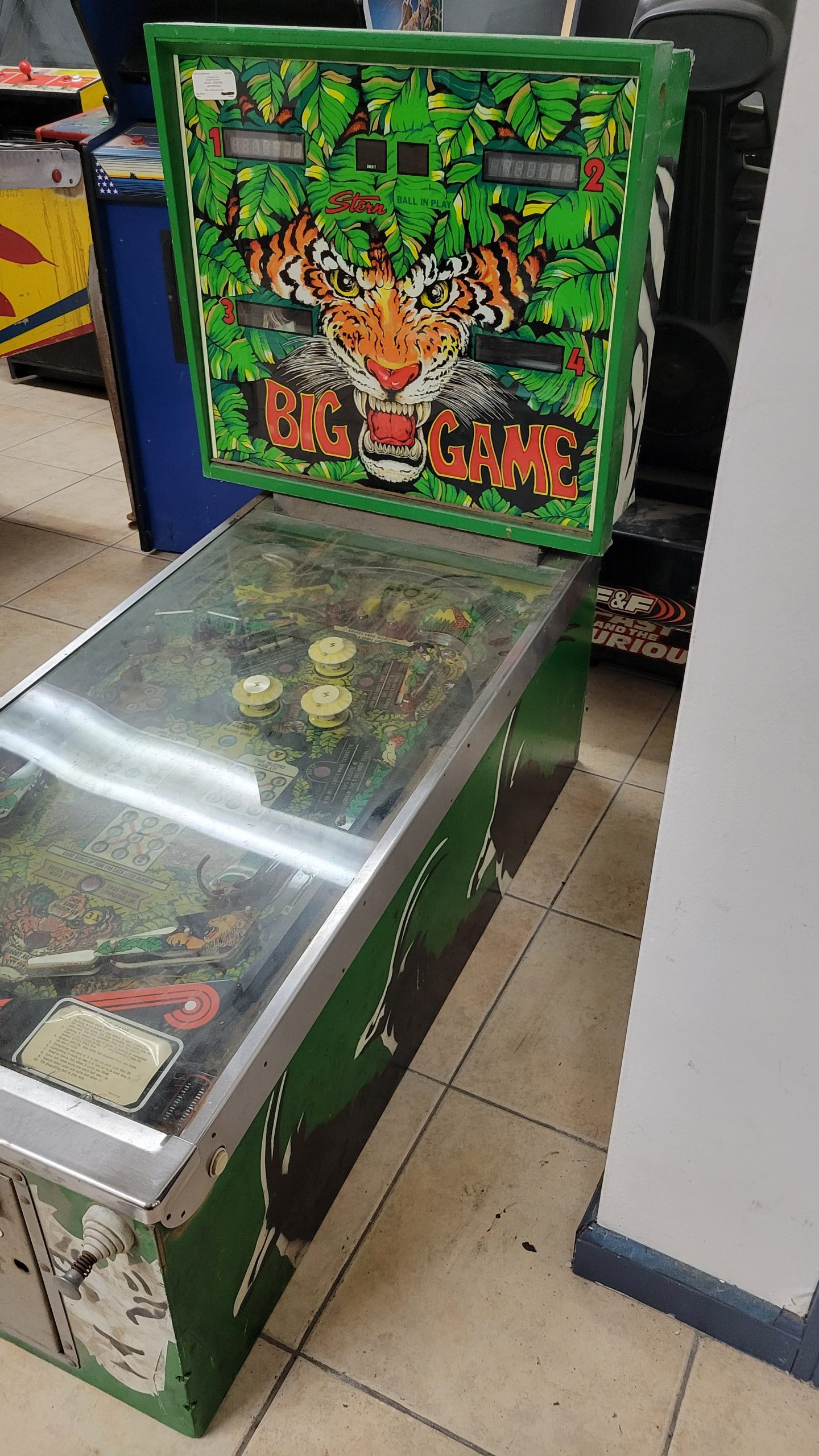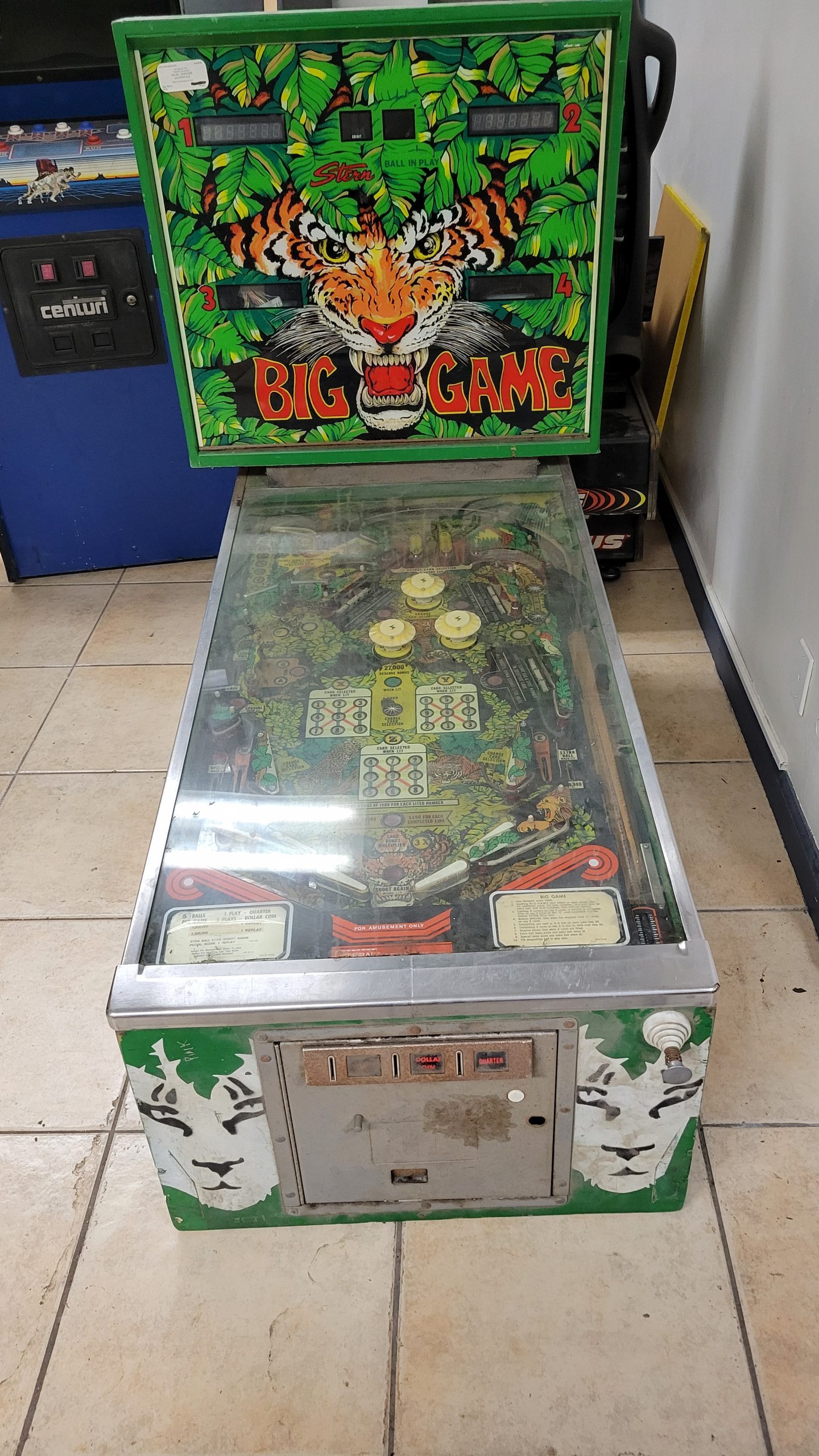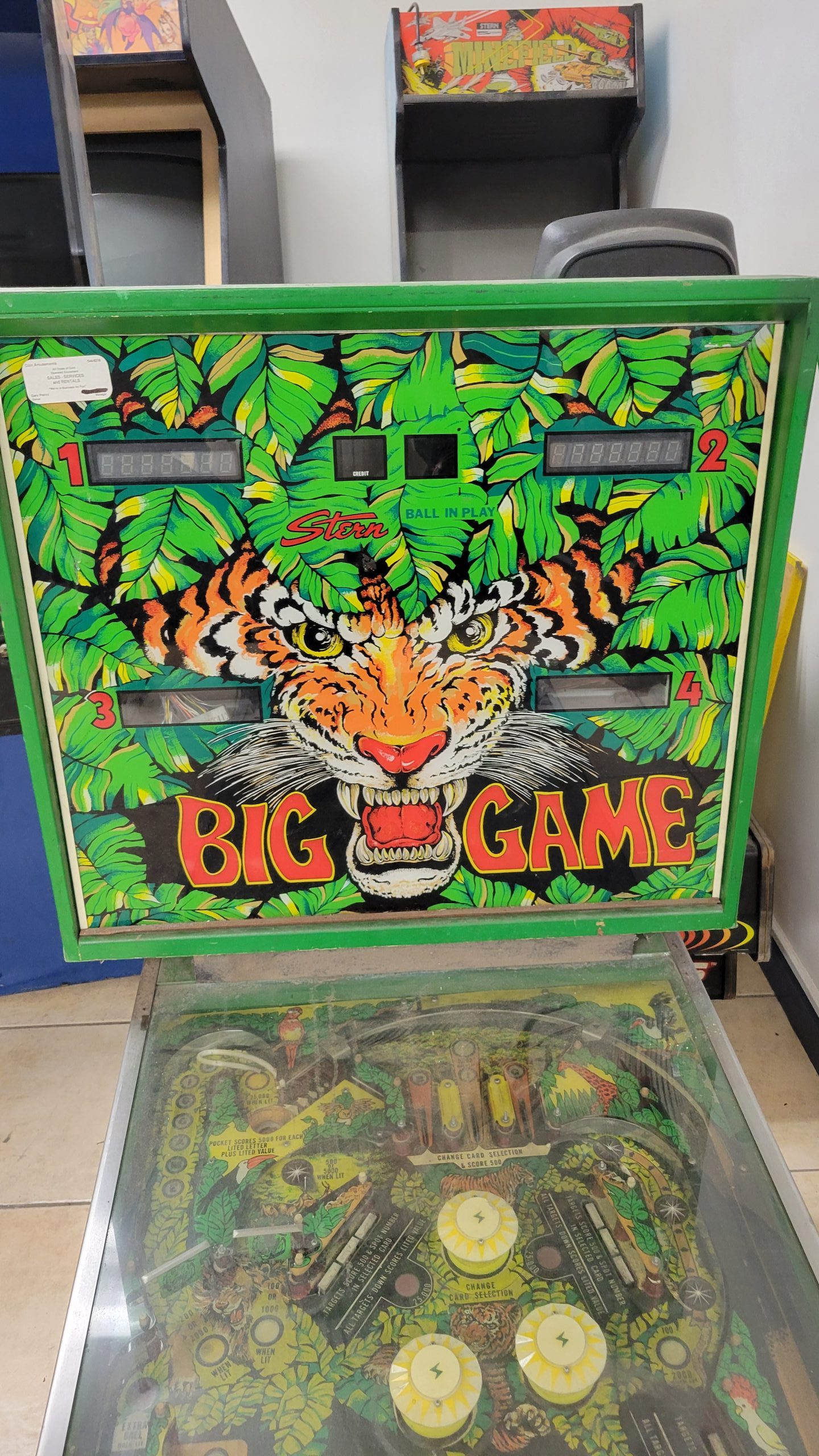 It was also the first electronic pinball to use 7-digit score displays. To advertise this, all four score displays simultaneously animate the numbers “1234567” during Game Over mode, followed by flashing “7777777” for three seconds, repeating it again after displaying high scores. There are no added sounds during this animation. According to an article in Amusement Review (Jan/Feb 1980, page 6), Stern was “prototyping models with both the traditional and a new plastic playfield.” We have not seen the plastic playfield for this game, if any still exist. Manufacturer data for Big Game: |