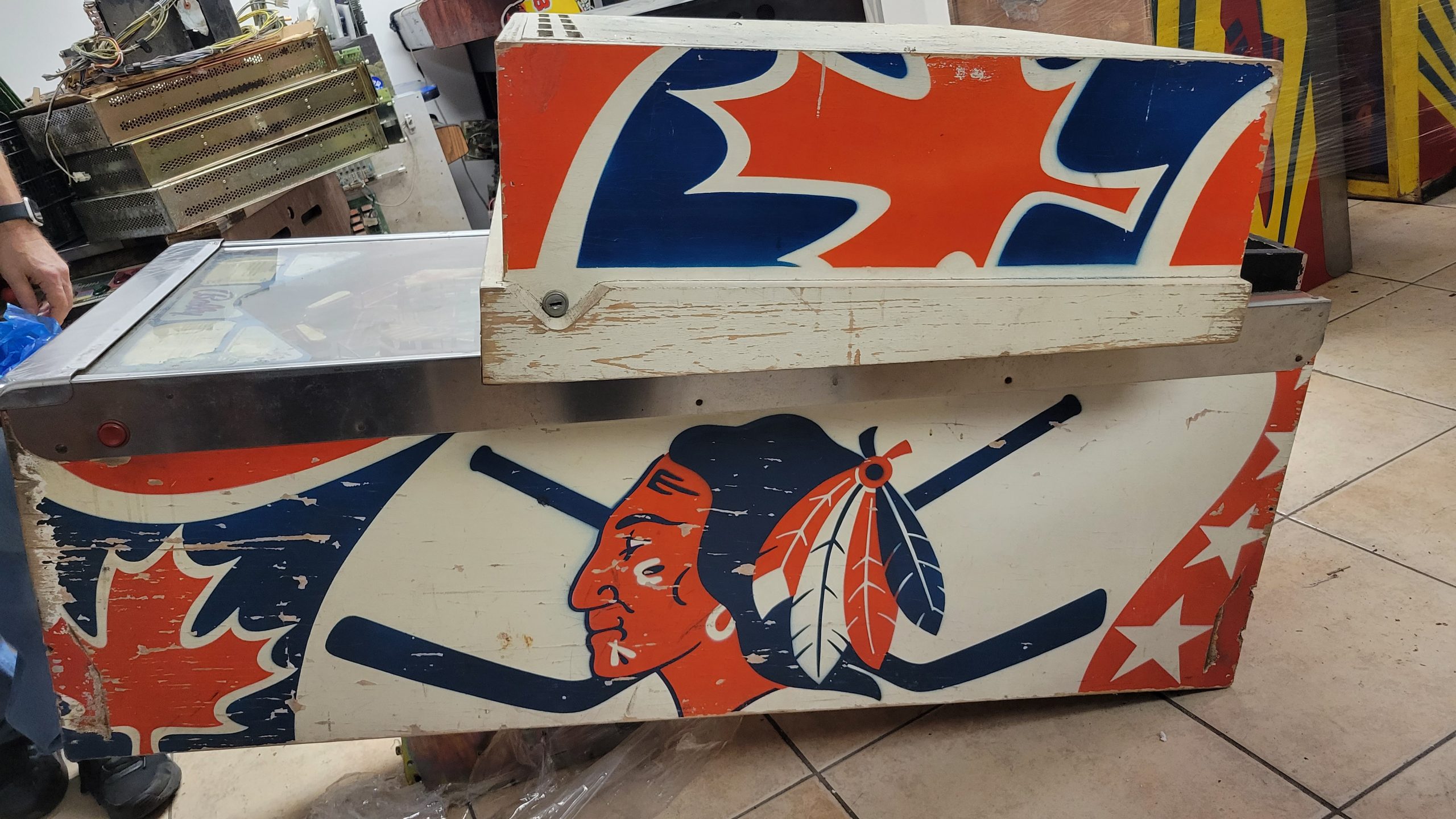This pinball with hockey features and effects was built in 1978, by popular pinball machine maker Bally. It features the famous hockey player Bobby Orr.