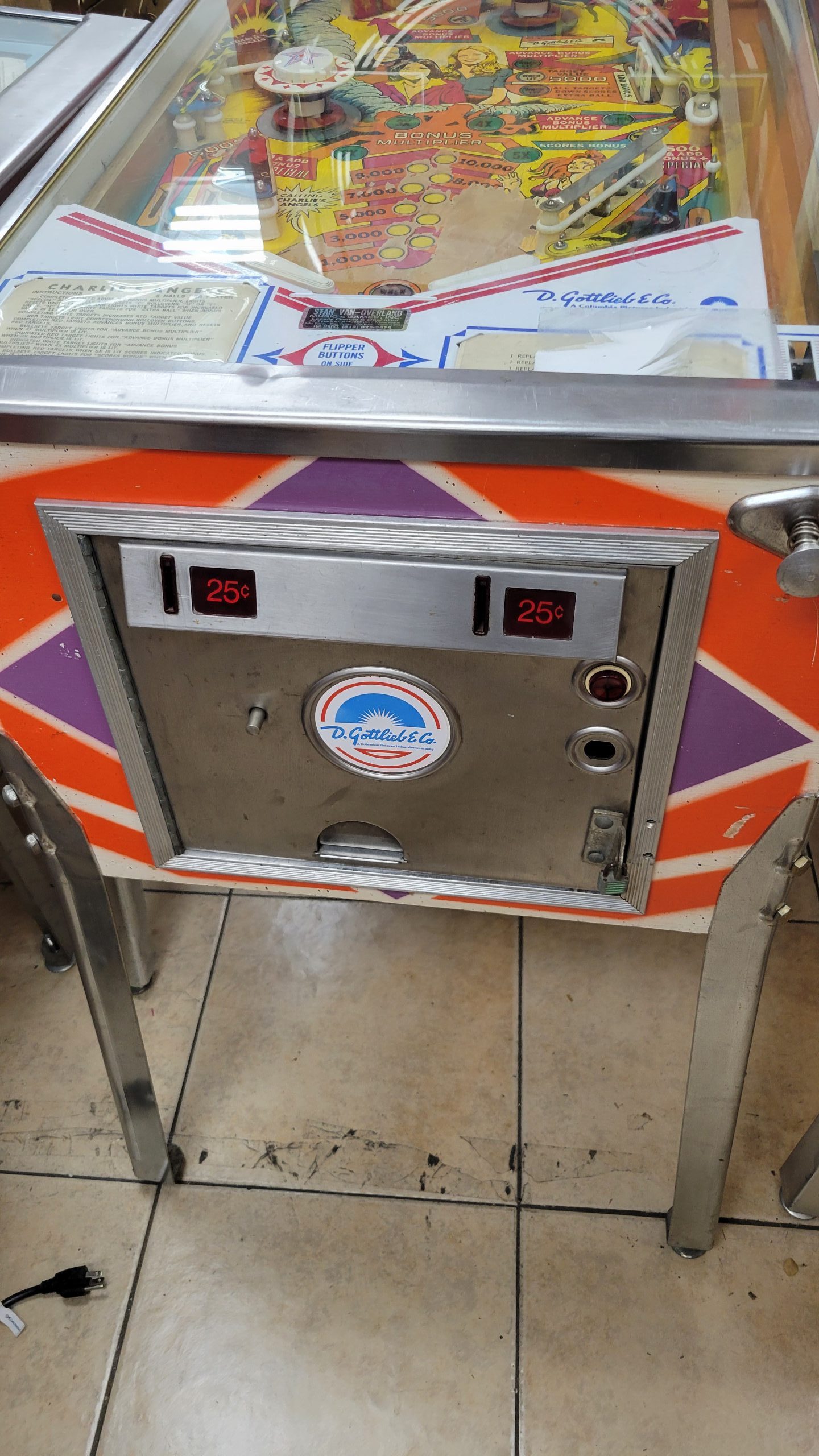 The machine will host 4 player comfortably with dedicated score counters. This would make a great pinball machine for a classic gaming room or even a lady cave! You can bet they have one of these sitting in the lobby of the Townsend Agency. Something for the traditional law enforcement to enjoy in their ample off time? Because even if you don’t get the high score… All Angels go to heaven!