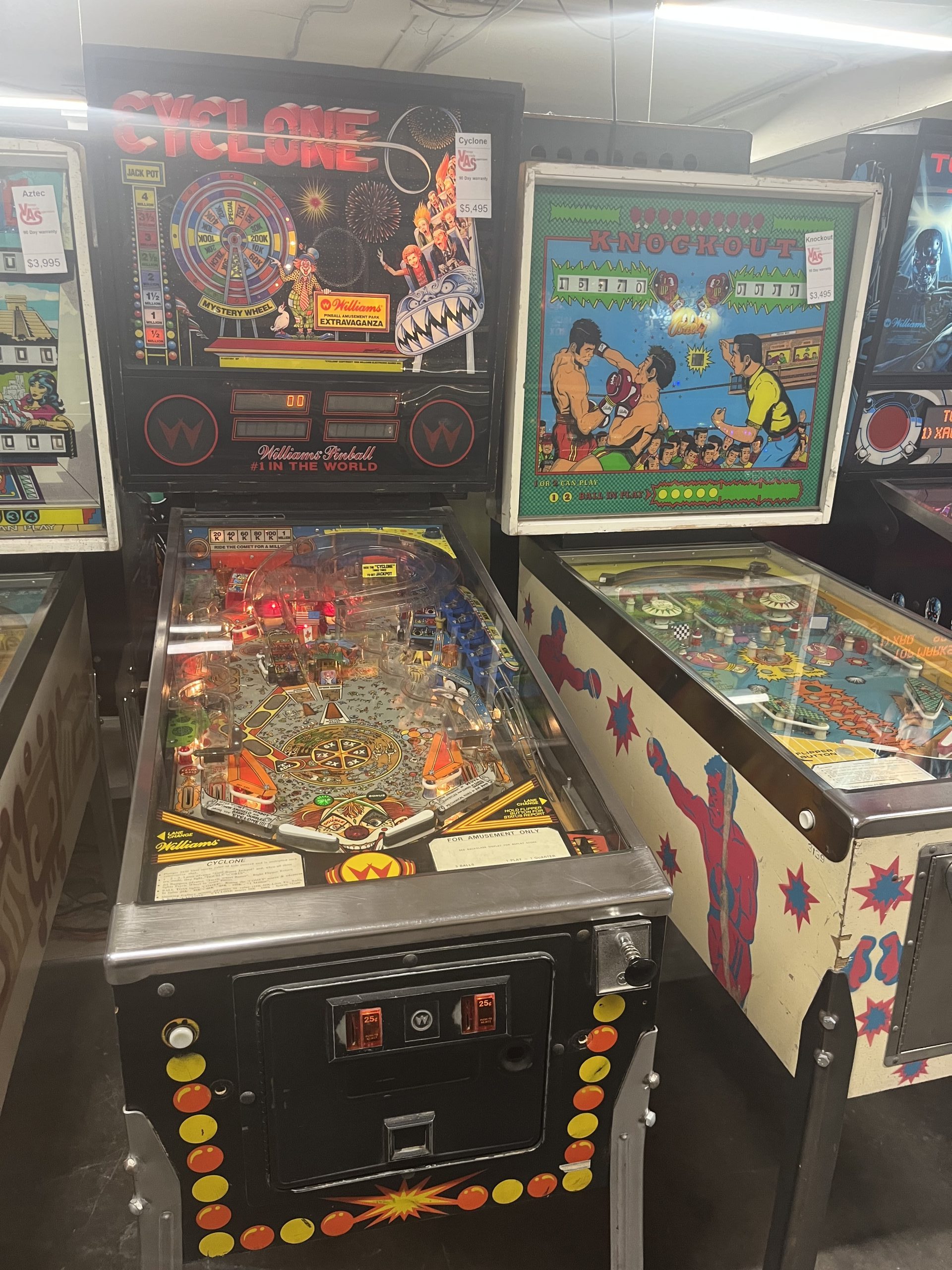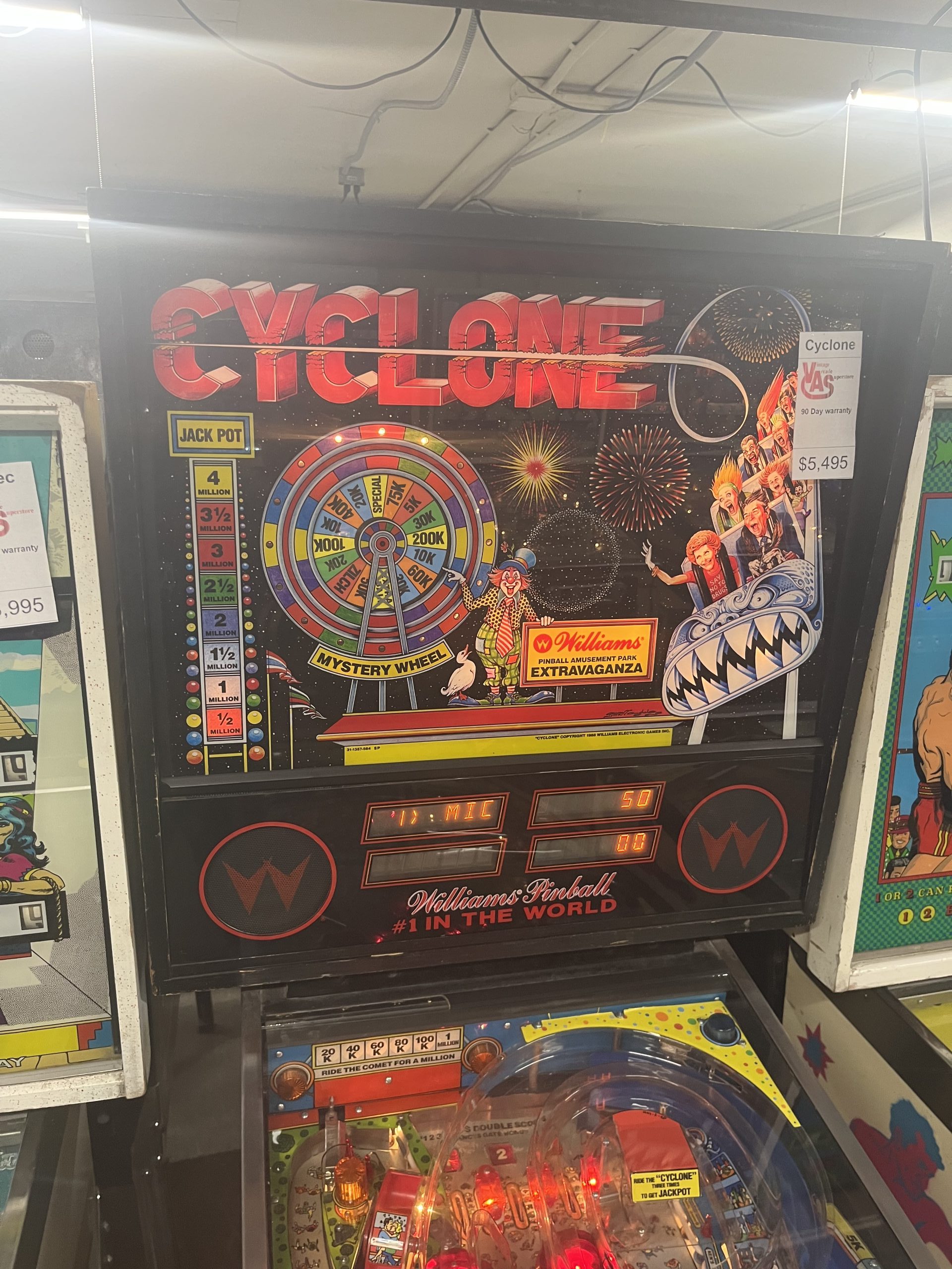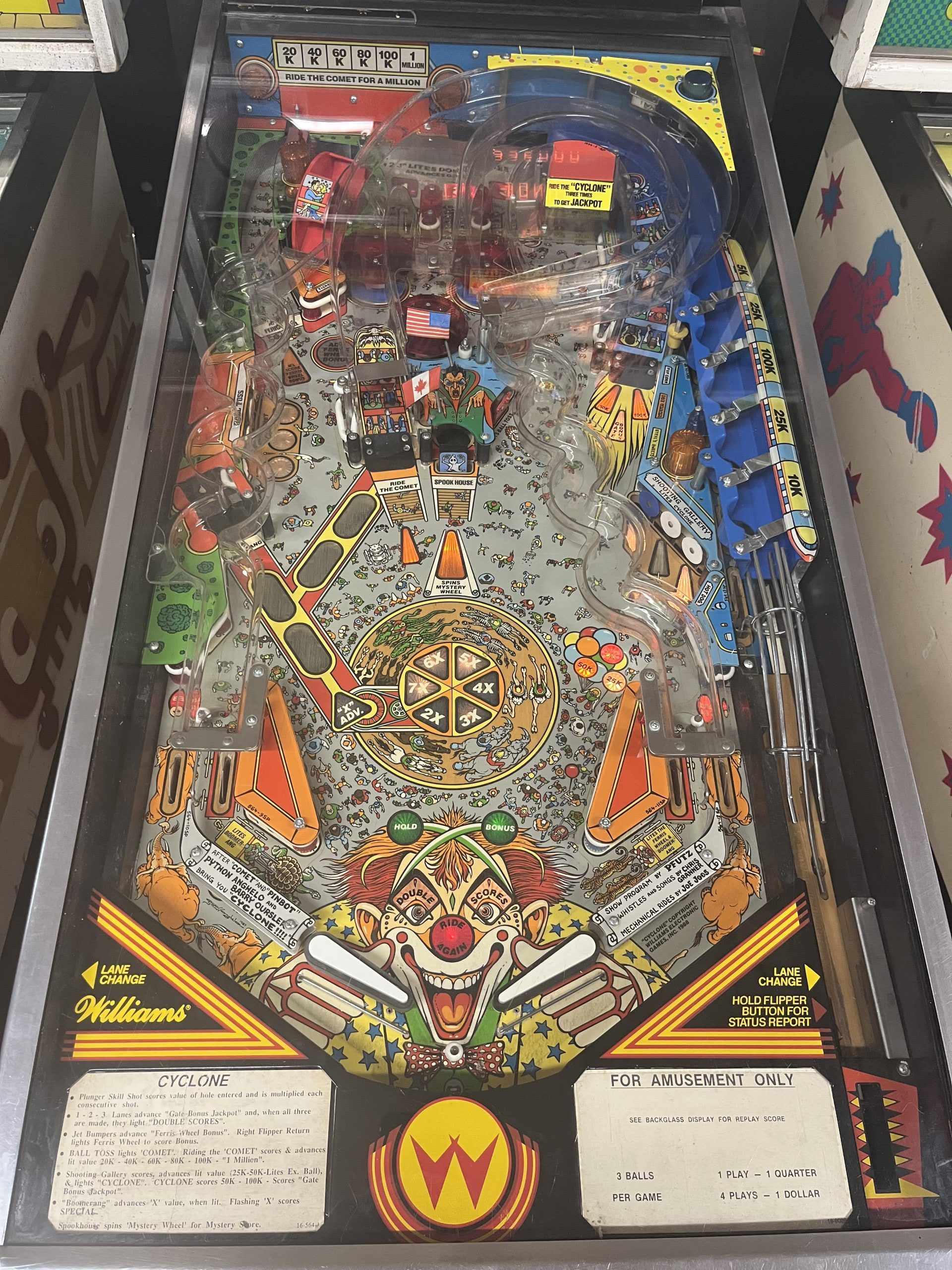 Its distinctive layout separates it from other pinballs while at the same time adding to the overall theme and fun of itself. There is no way to pass Cyclone by without feeling the need to play and further explore every feature of the game and detail of the artwork! With a variety of different ways to score but keeping a simple set of rules you can always count on a good time with Cyclone. One of the features is a jackpot that builds up from game to game without resetting until you collect it.