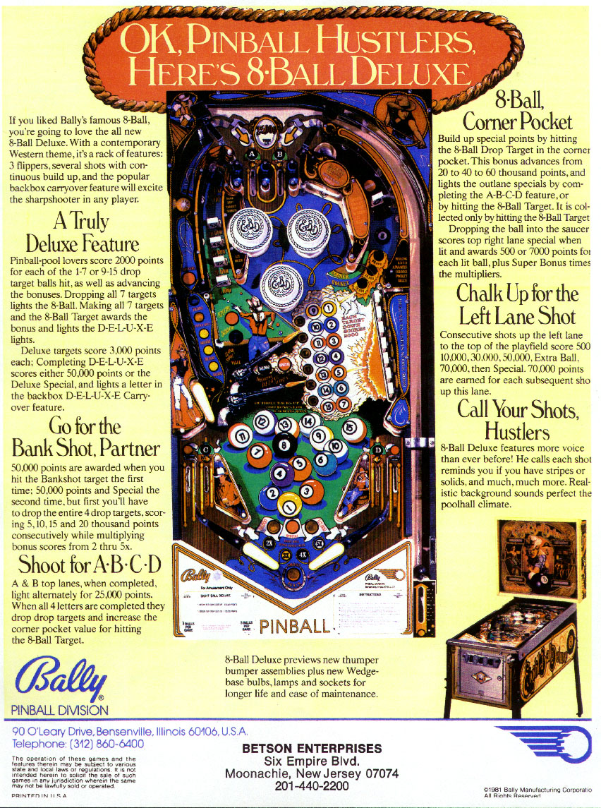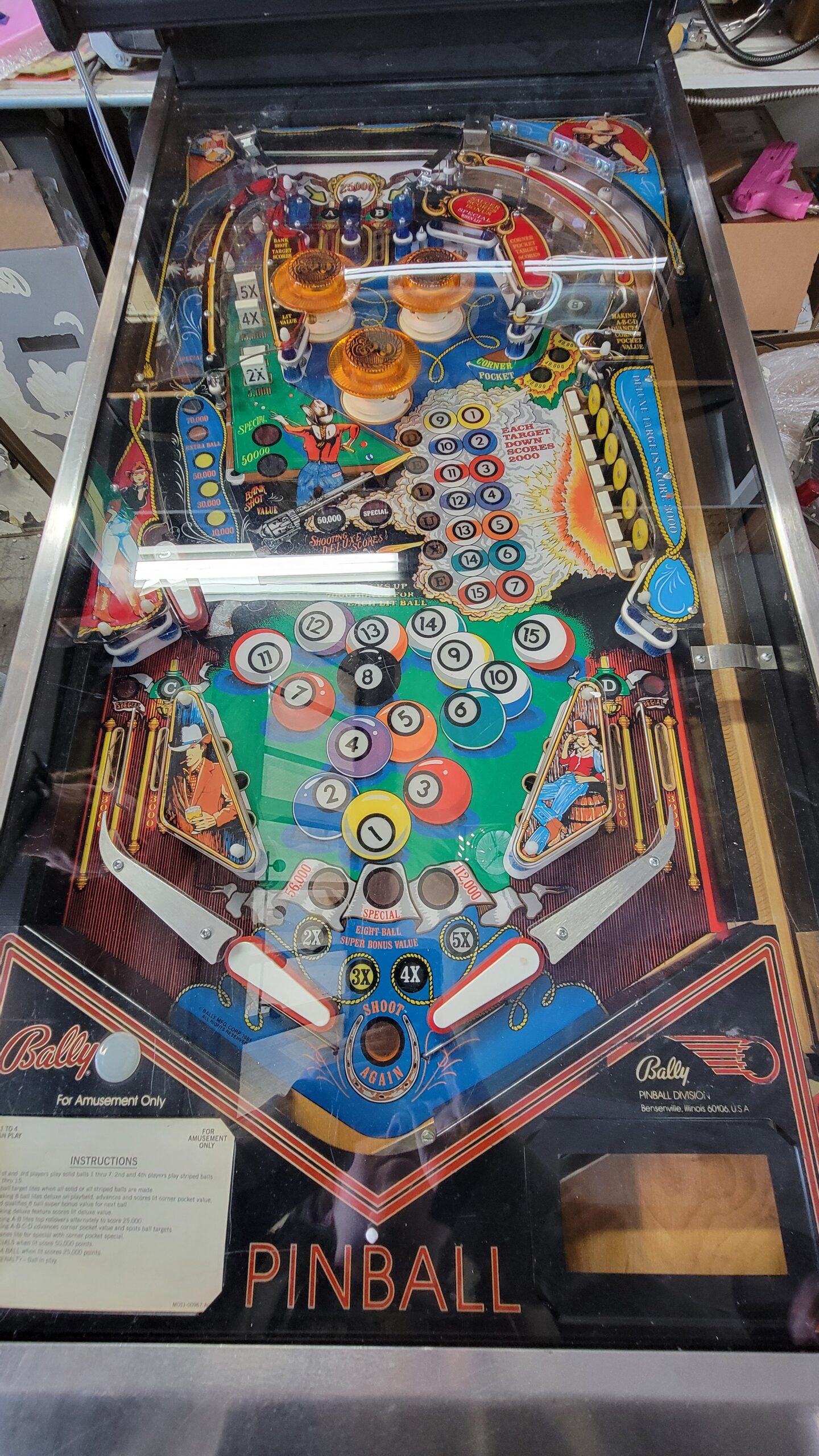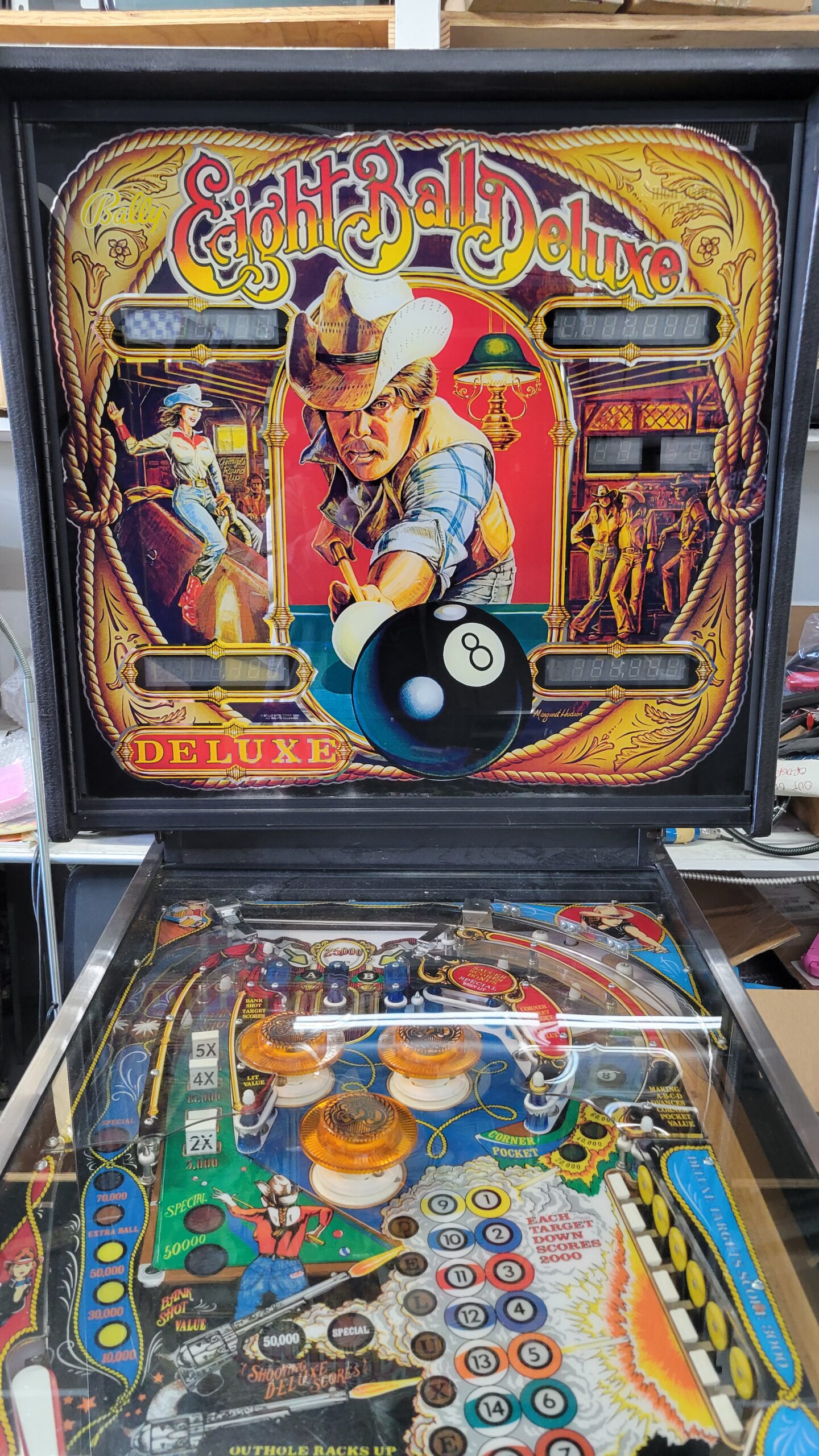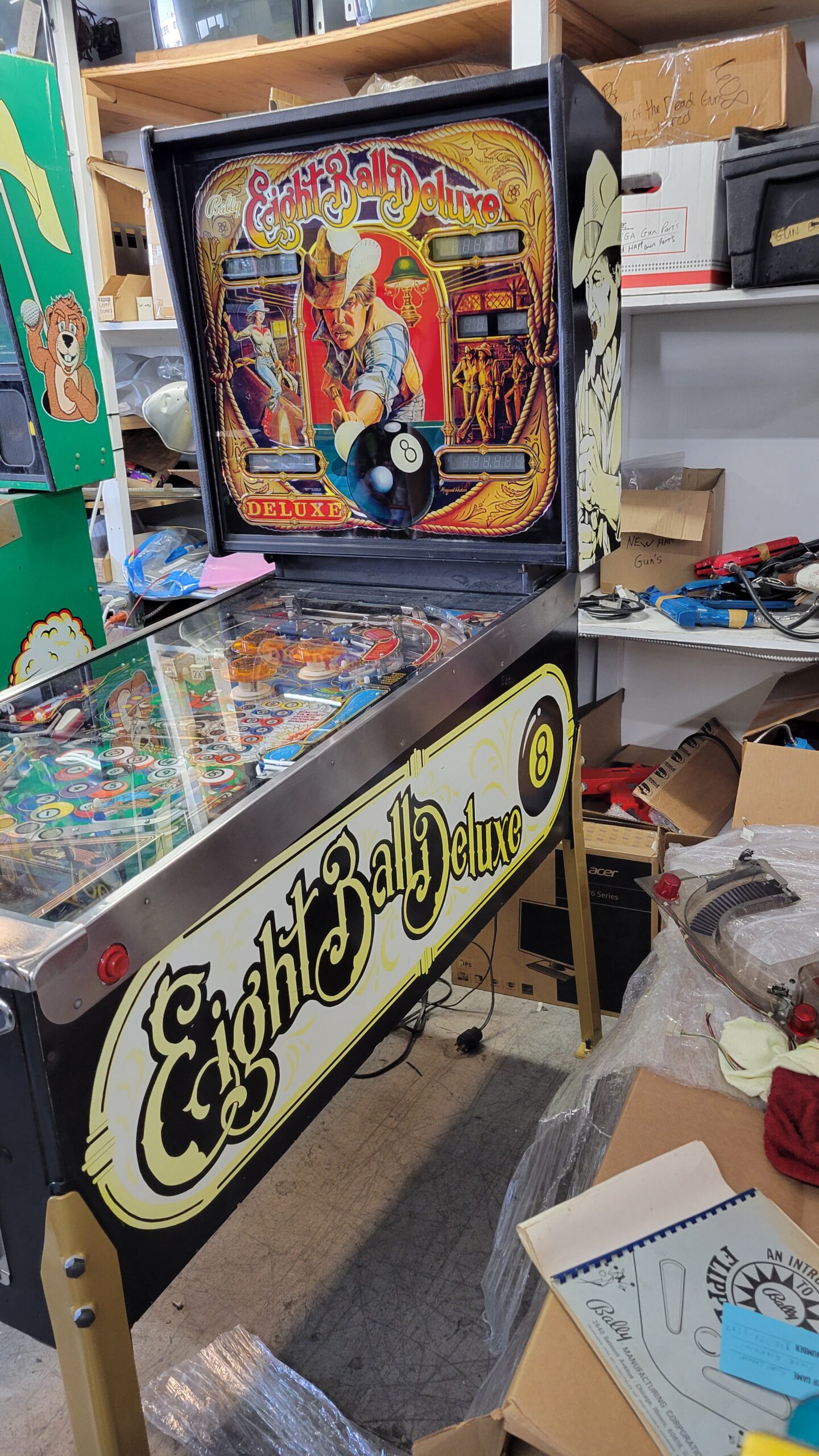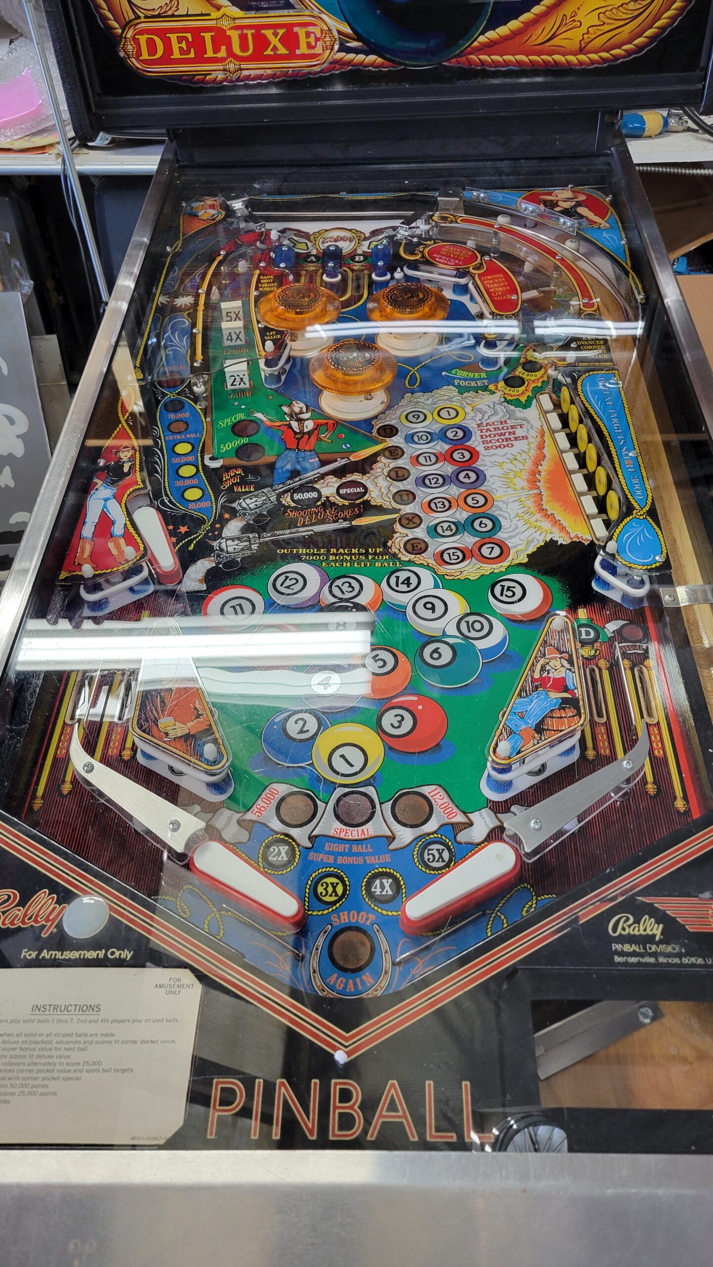 Come check out this Eight Ball Deluxe game with a billiards theme. The creation is due to the pinball company Bally. It’s available at Vintage Arcade Superstore today!