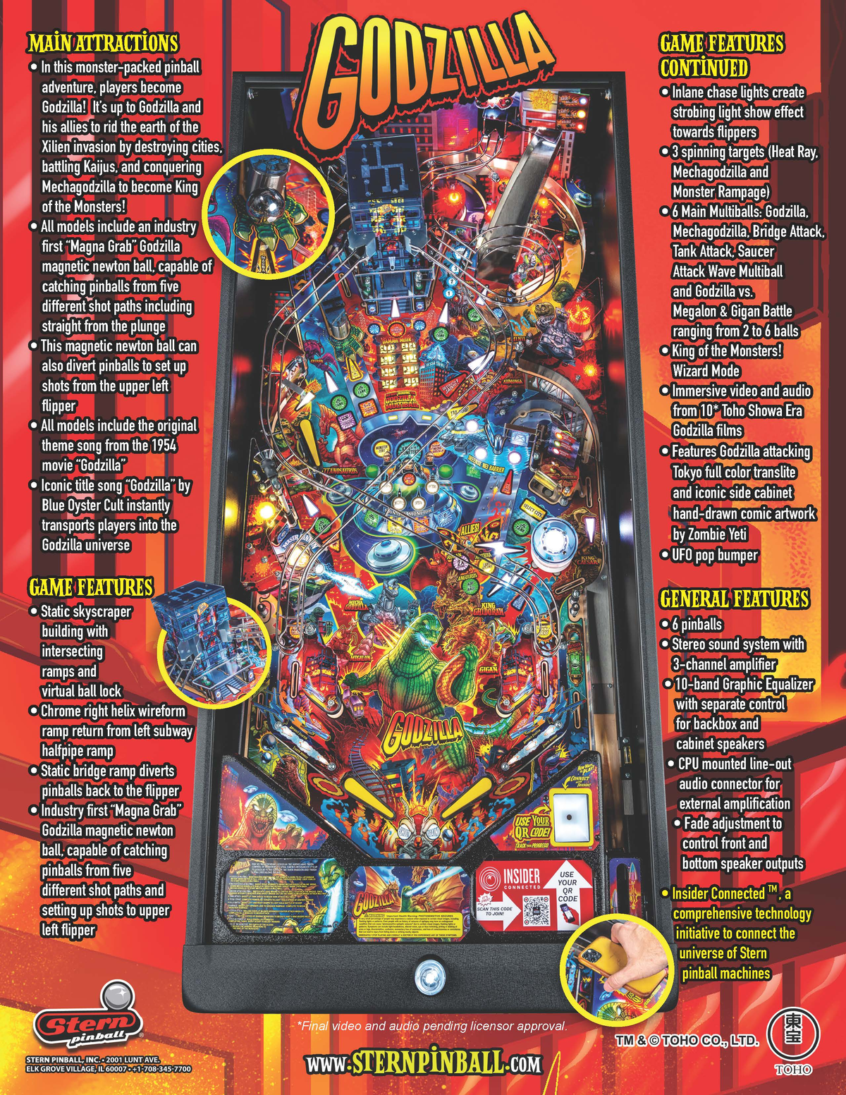 Godzilla is the first Stern game with factory-installation of their Insider Connected™ player tracking system.