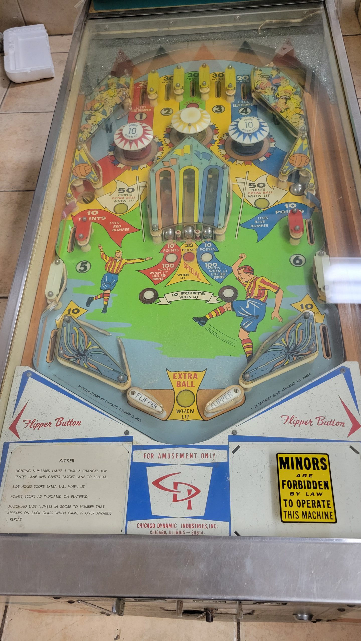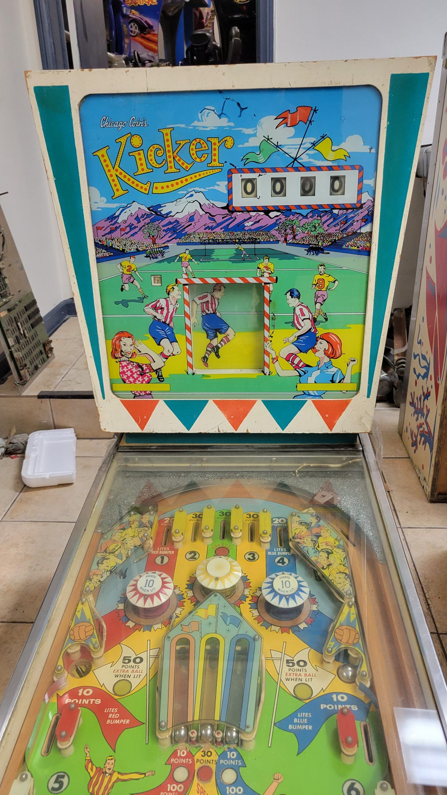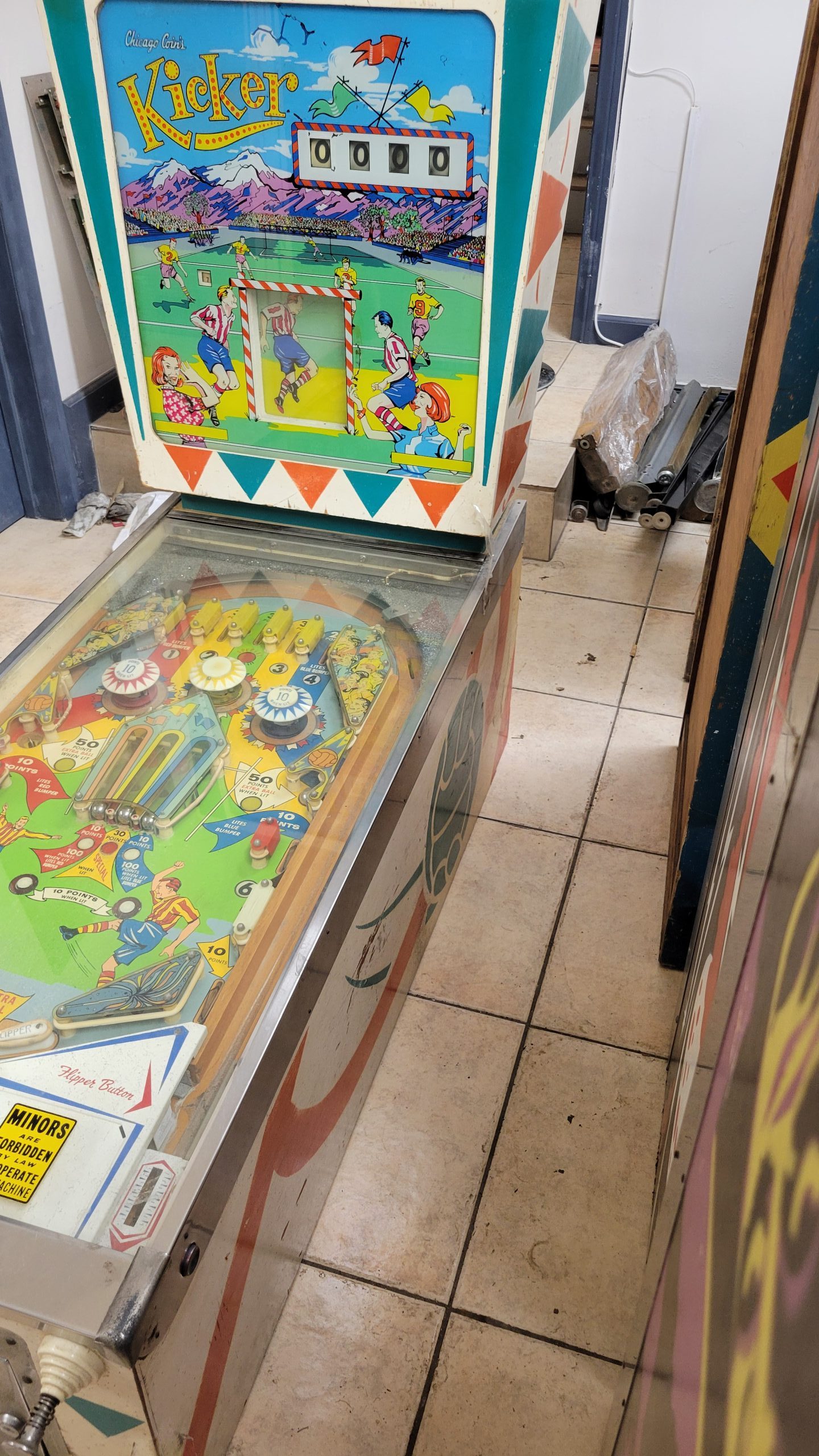 Come check out this Kicker pinball with a Fun soccer theme made by the pinball company Chicago Coin at Vintage Arcade Superstore today!