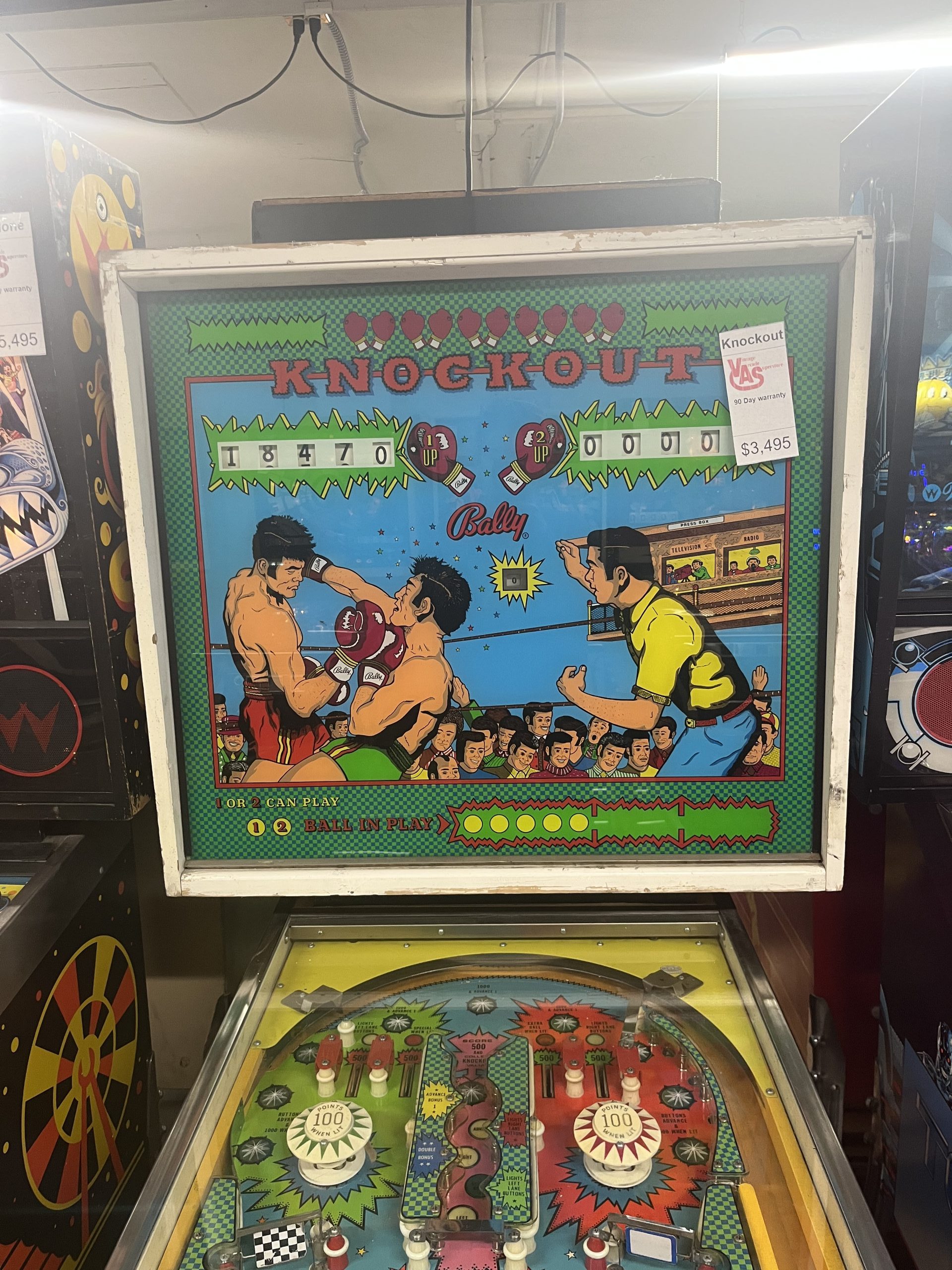 KnockOut belonged to the King of Rock, Elvis Presley, and it is on display in his Graceland Mansion! The boxing theme is awesome. The artwork is cool overall, especially the part when the boxers are fighting. The game can become methodical and easy to get into the spinners if the slope rate is set to a flatter level. The game feels very different, though, if you increase the slope rate in a manner reminiscent of a Bally game from the late 1970s or early 1980s. Rips into the spinning get harder and faster. If Elvis owned it, you know its got to be good!