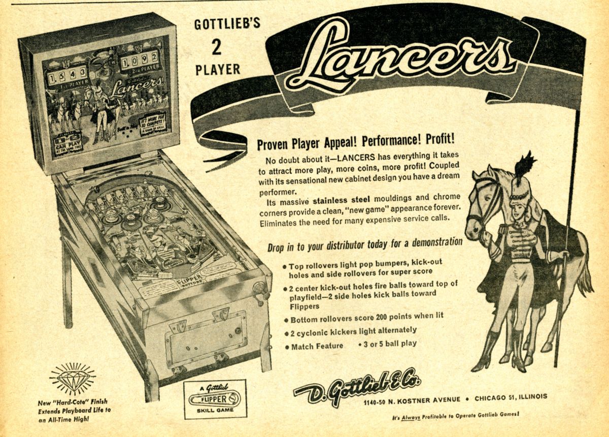 Come check out this Lancers pinball with a Fun Calvary theme made by the pinball company Gottlieb at Vintage Arcade Superstore today!