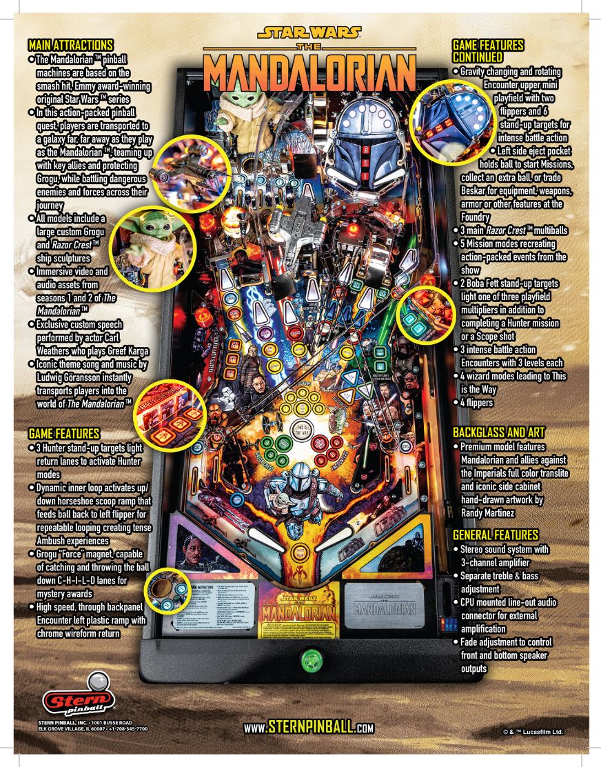 The Mandalorian Premium Pinball Machine is a themed pinball game based on the TV series that is on Disney Plus and made by Stern.