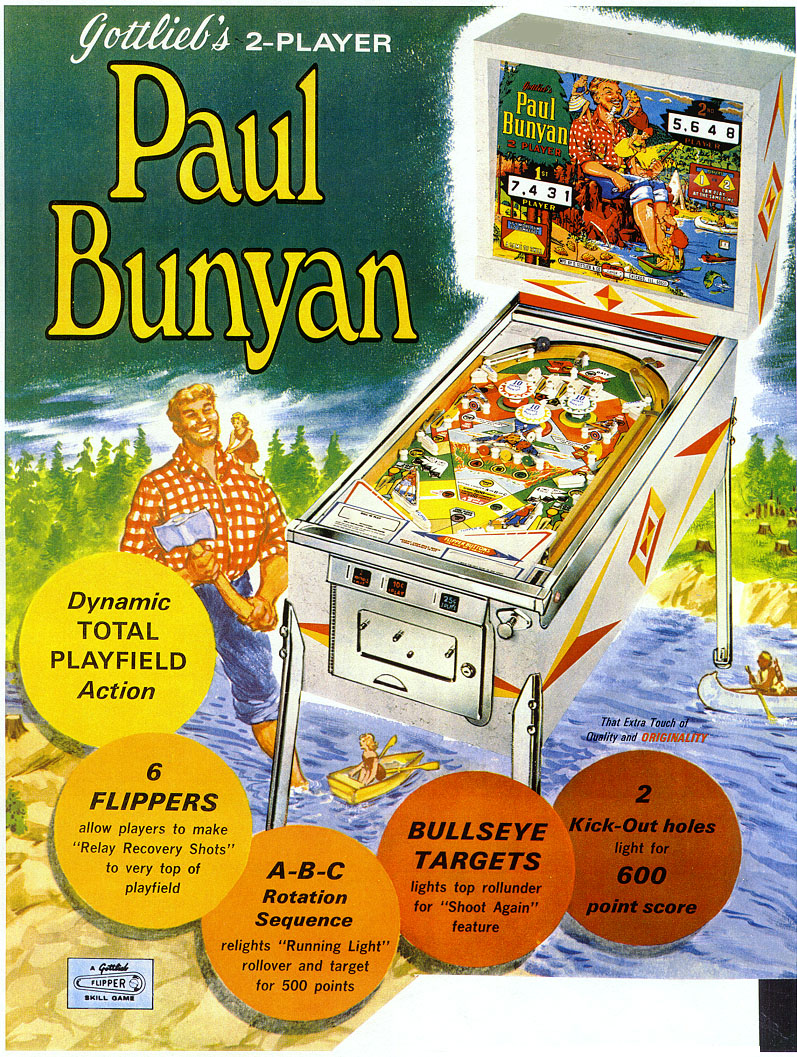 Come check out this Paul Bunyan pinball with a Myth and Legend theme made by the pinball company Gottlieb at Vintage Arcade Superstore today!
