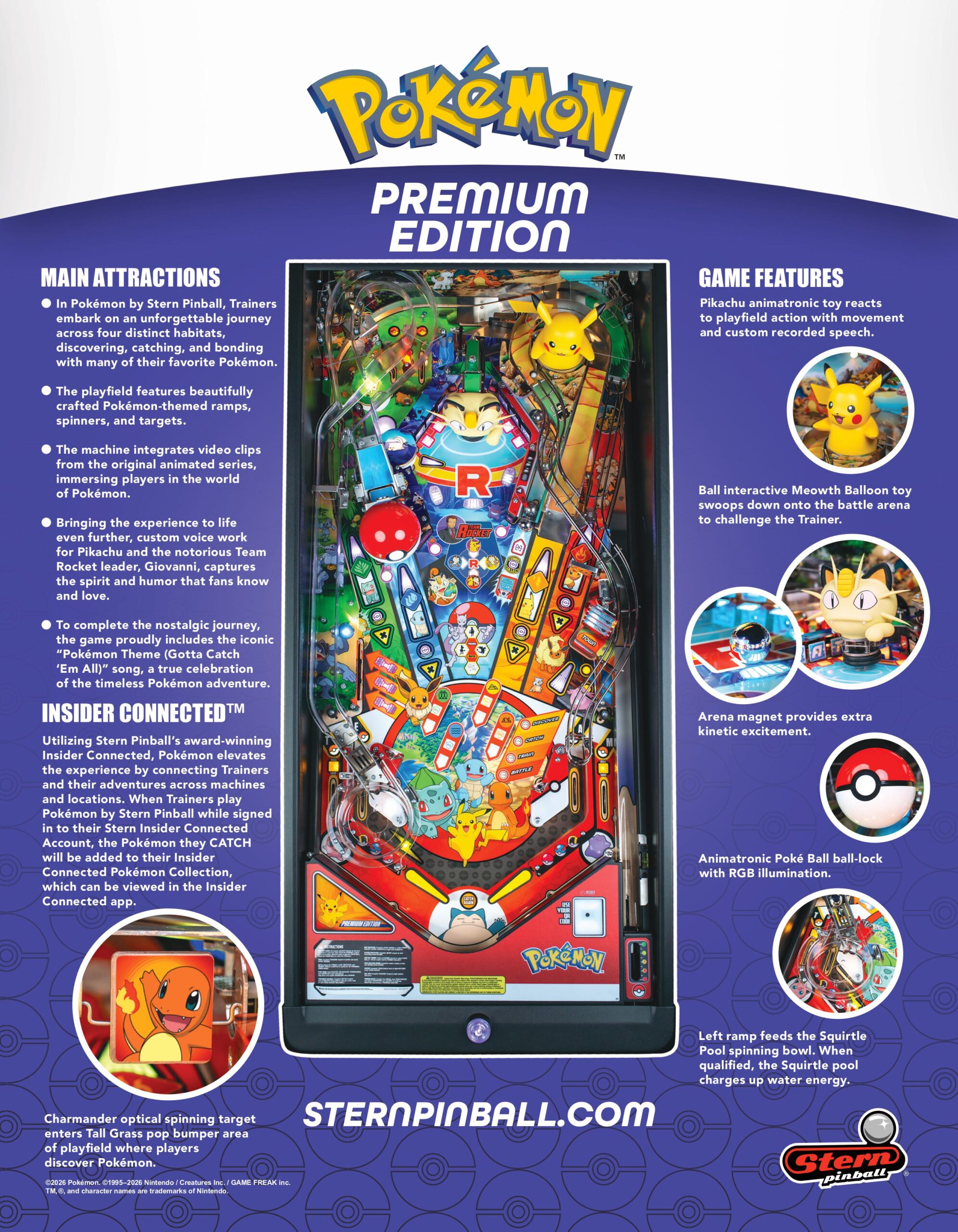 - Utilizing Stern Pinball’s award-winning Insider Connected, Pokémon elevates the experience by connecting Trainers and their adventures across machines and locations. When Trainers play Pokémon by Stern Pinball while signed in to their Stern InsiderConnected Account, the Pokémon they CATCH will be added to their Insider Connected Pokémon Collection, which canbe viewed in the Insider Connected app.