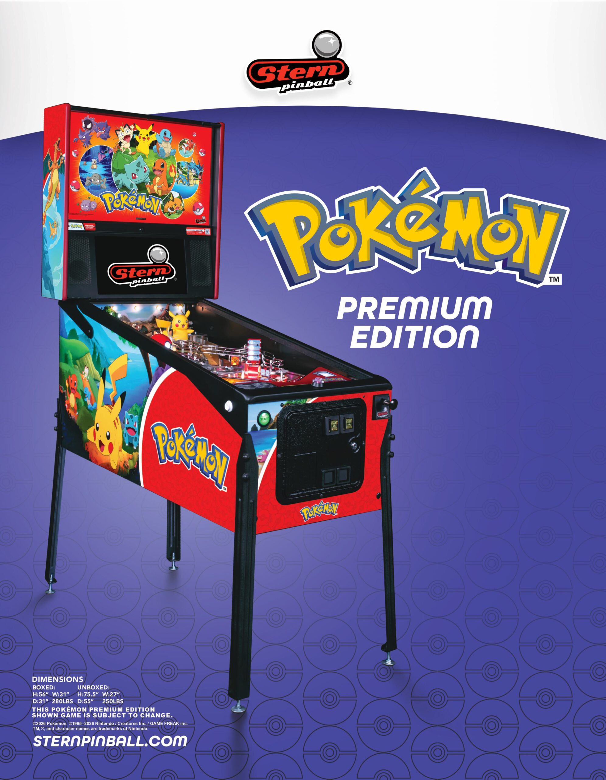 Stern’s Pokémon Pinball lets players catch and battle Pokémon across a dynamic themed playfield as they train to become top Trainers in an immersive pinball adventure.