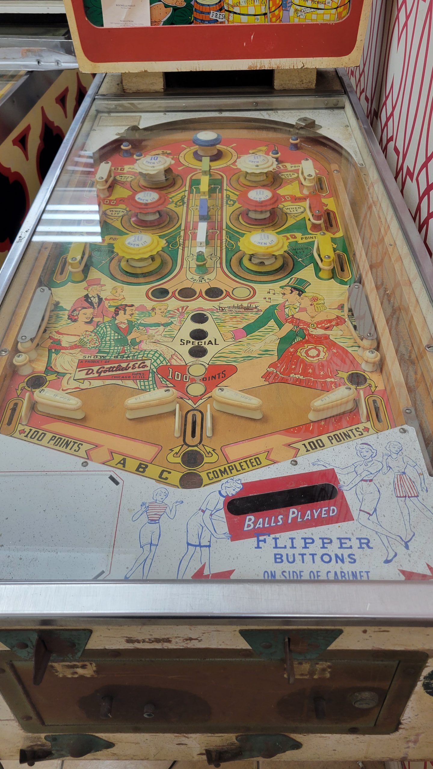 Show boat is a difficult game, very challenging. However, it is unusual to engage a left flipper using the right button and vice versa. It’s also annoying that you can’t engage a single flipper separately. But if you complete all of the objectives, your rewards will be fantastic: loads of points, three credits, and two match numbers…..