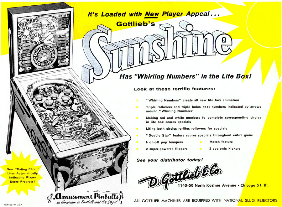 | Notes: | The backglass carries Gottlieb’s famous phrase: Amusement Pinballs, as American as Baseball and Hot Dogs! | |||