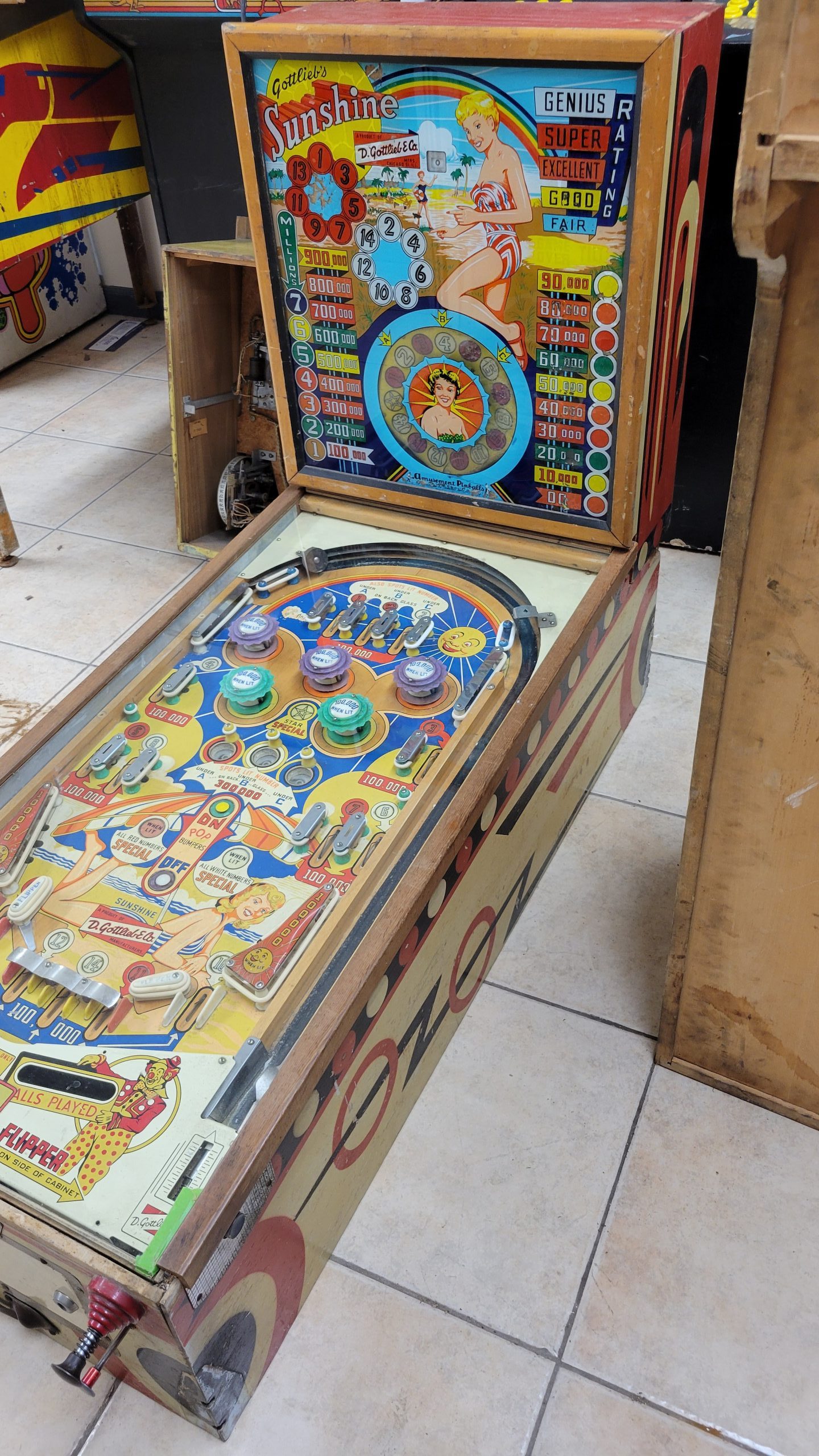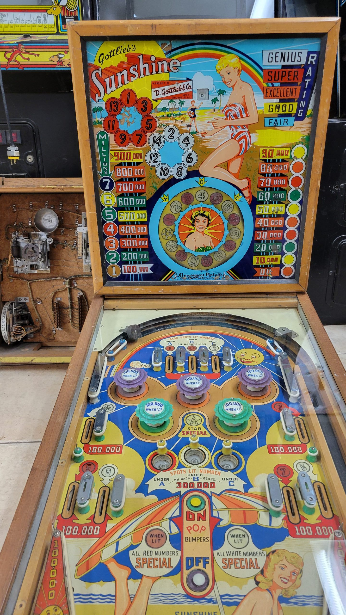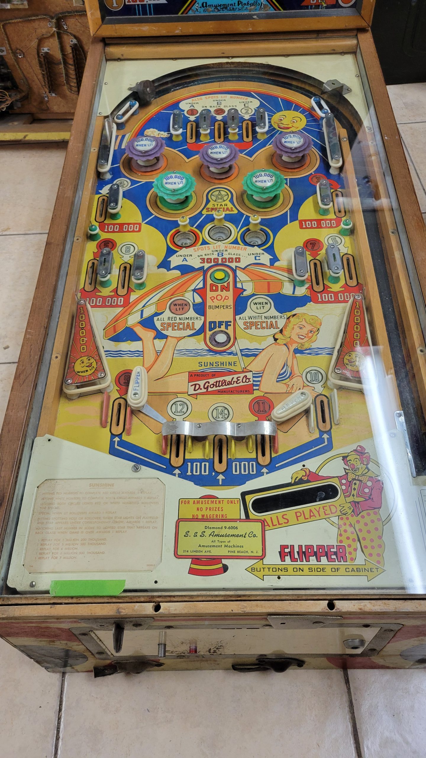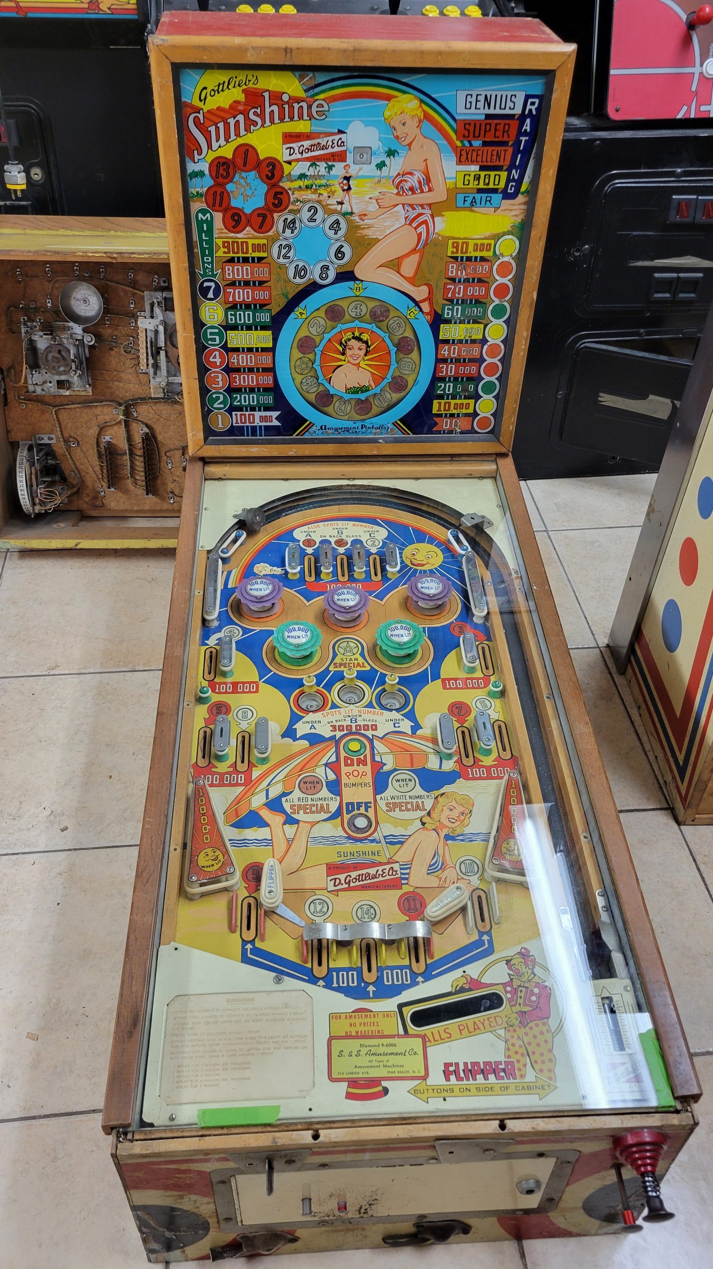 Come check out this Sunshine pinball with a Fun beach theme made by the pinball company Gottlieb at Vintage Arcade Superstore today!