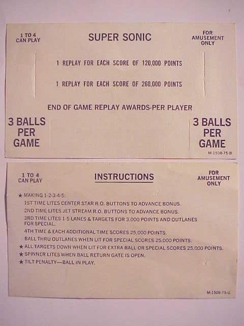| Notable Features: | Flippers (2), Pop bumpers (3), Slingshots (2), 5-bank drop targets (1), Standup targets (4), Kick-out hole (1), Spinning target (1), Right outlane ball return gate.