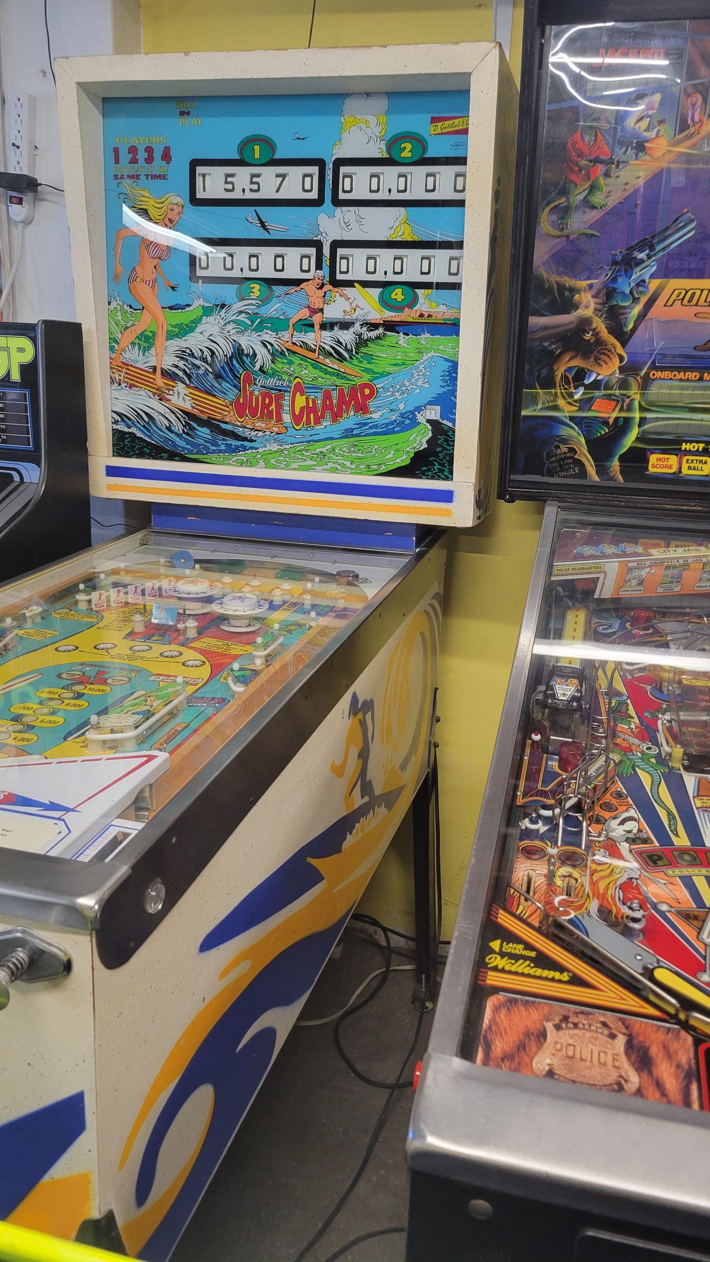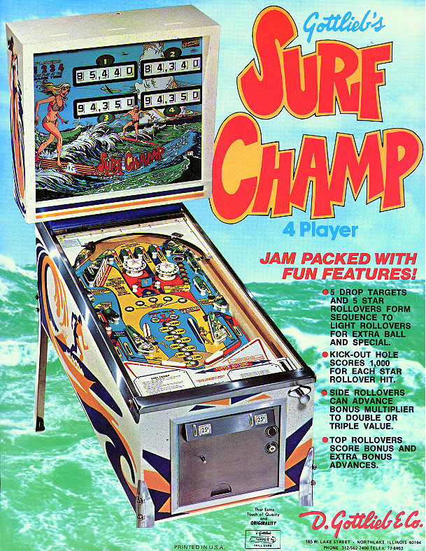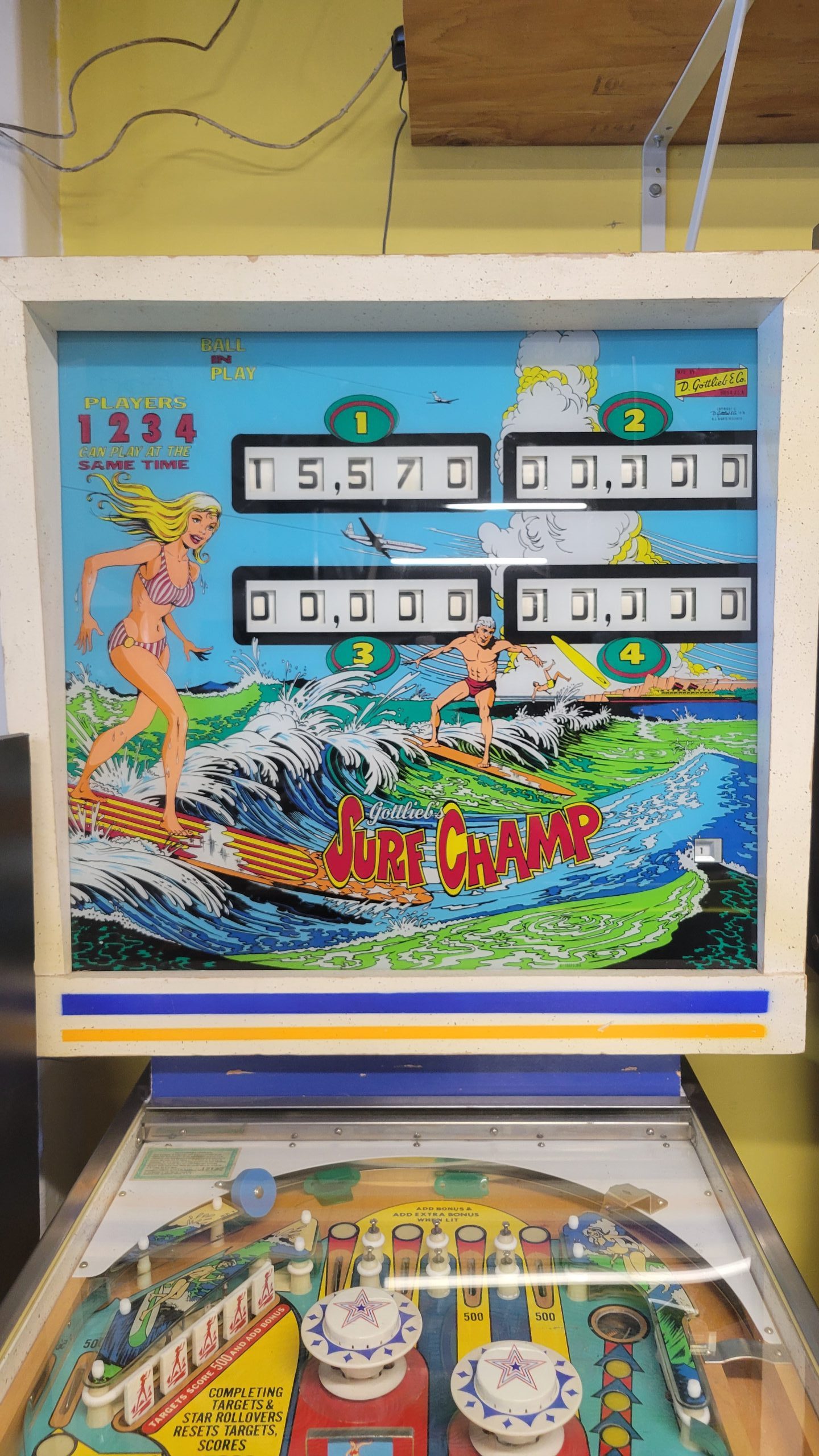 Now for sale at Vintage Arcade Superstore: Gottlieb’s 1976 Surf Champ pinball machine! This 4-player game is highly collectible.