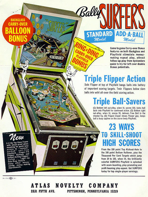 Information From the Original Surfers Pinball Machine Flyer