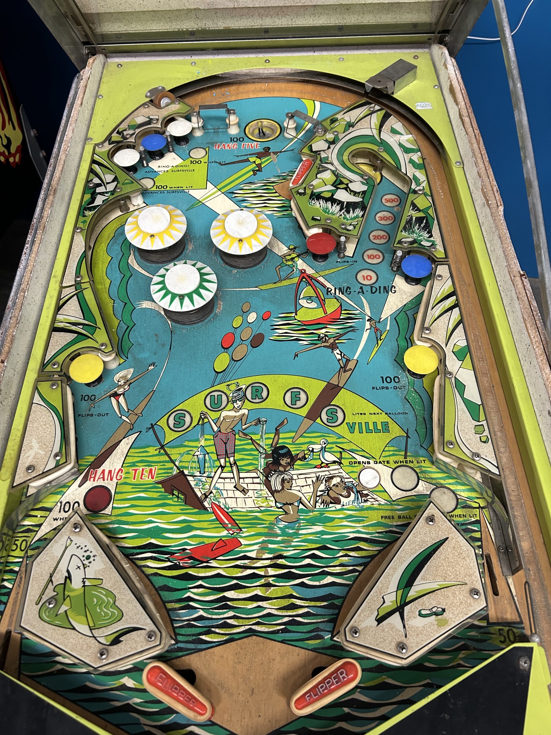 The Surfers Pinball Machine was made in 1967 by Bally