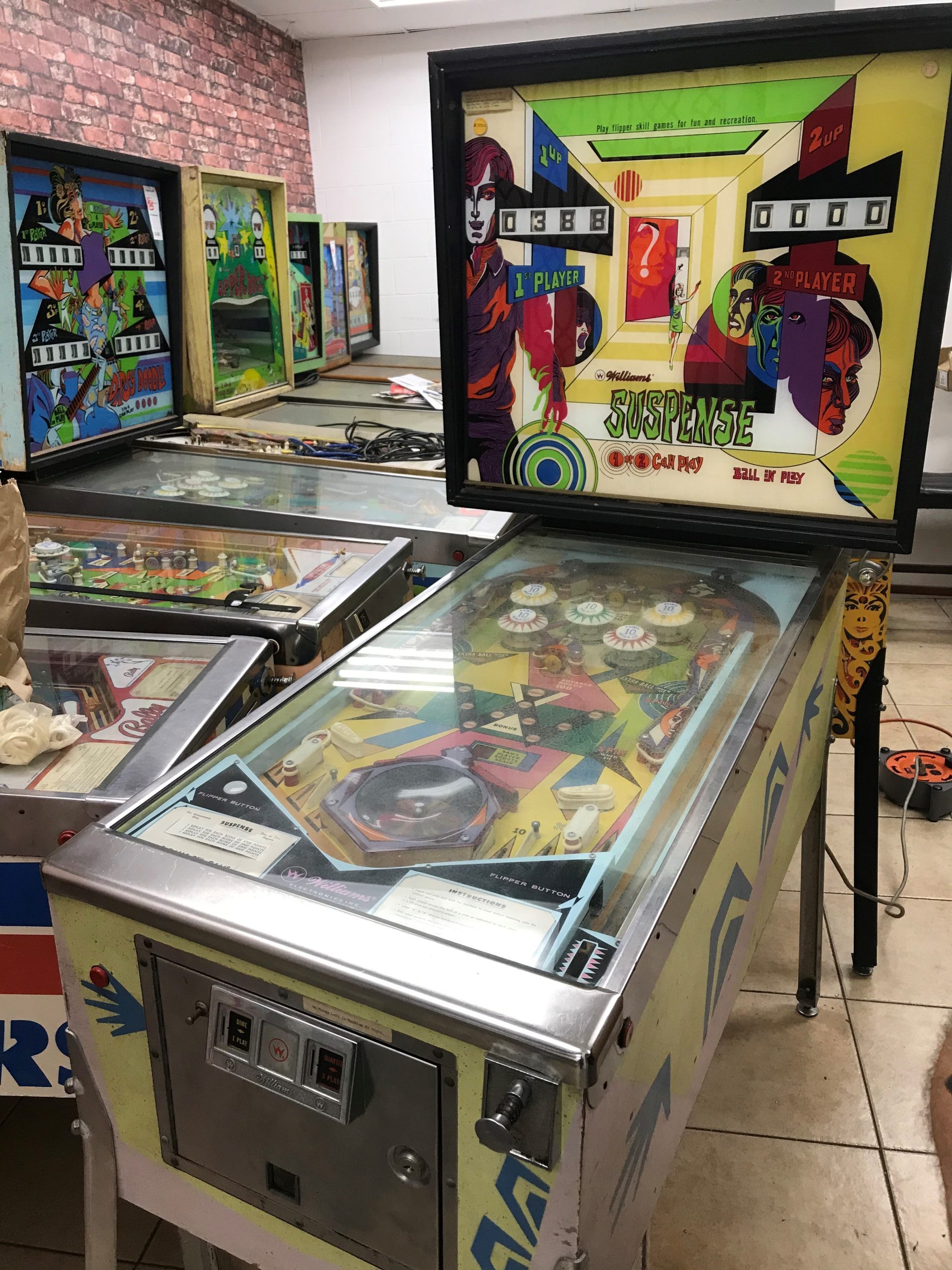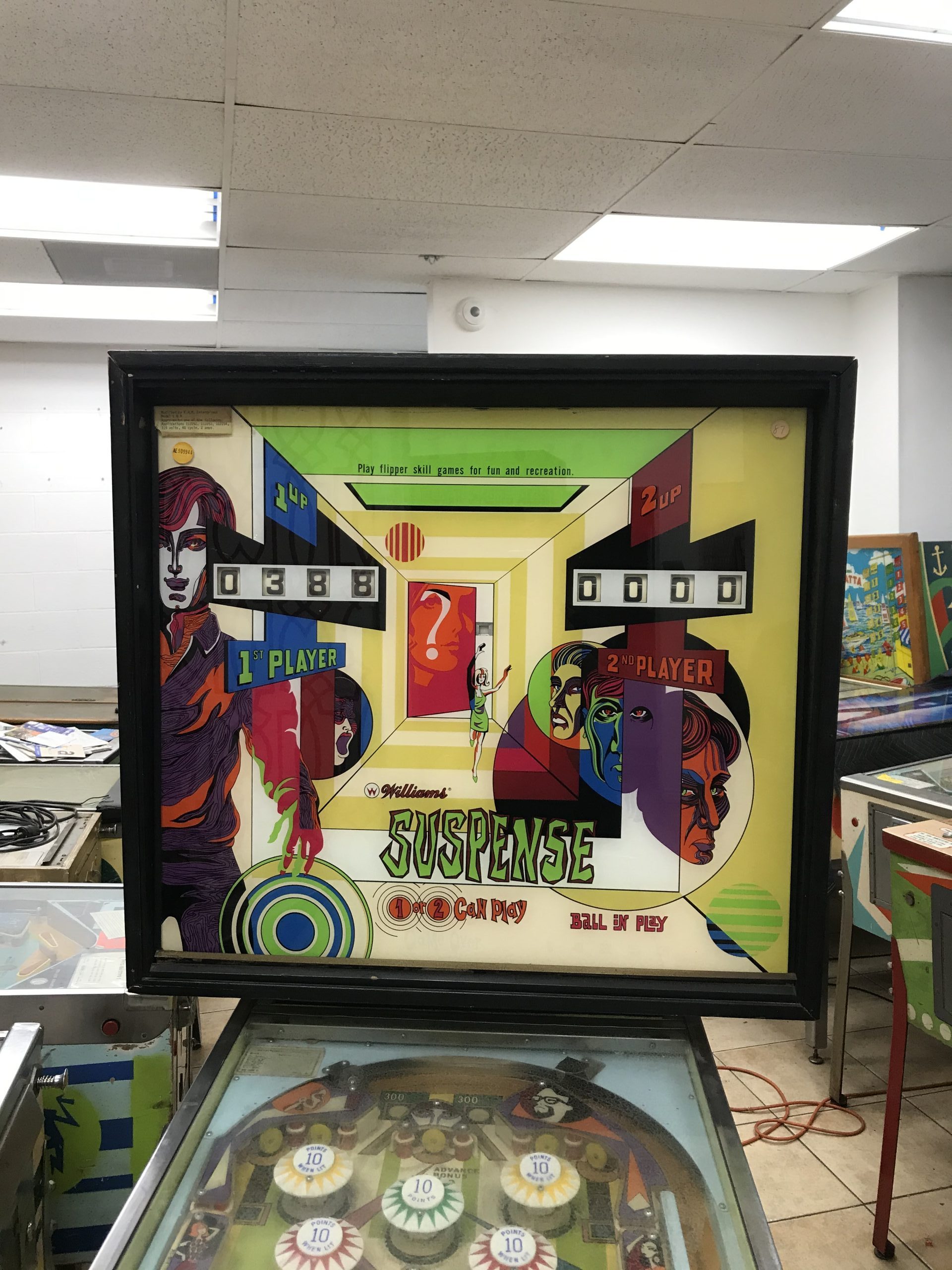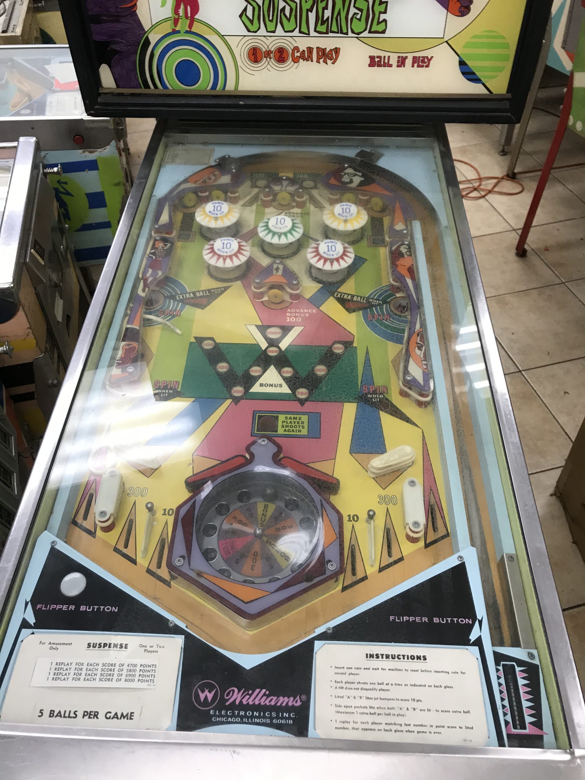 Suspense is a pinball machine with one of the more unique flipper styles, with one large and one regular on both sides. Also, this machine includes a spinner unit that awards points as high as 2,000! Pressing the buttons with the right pressure is essential for high scores.