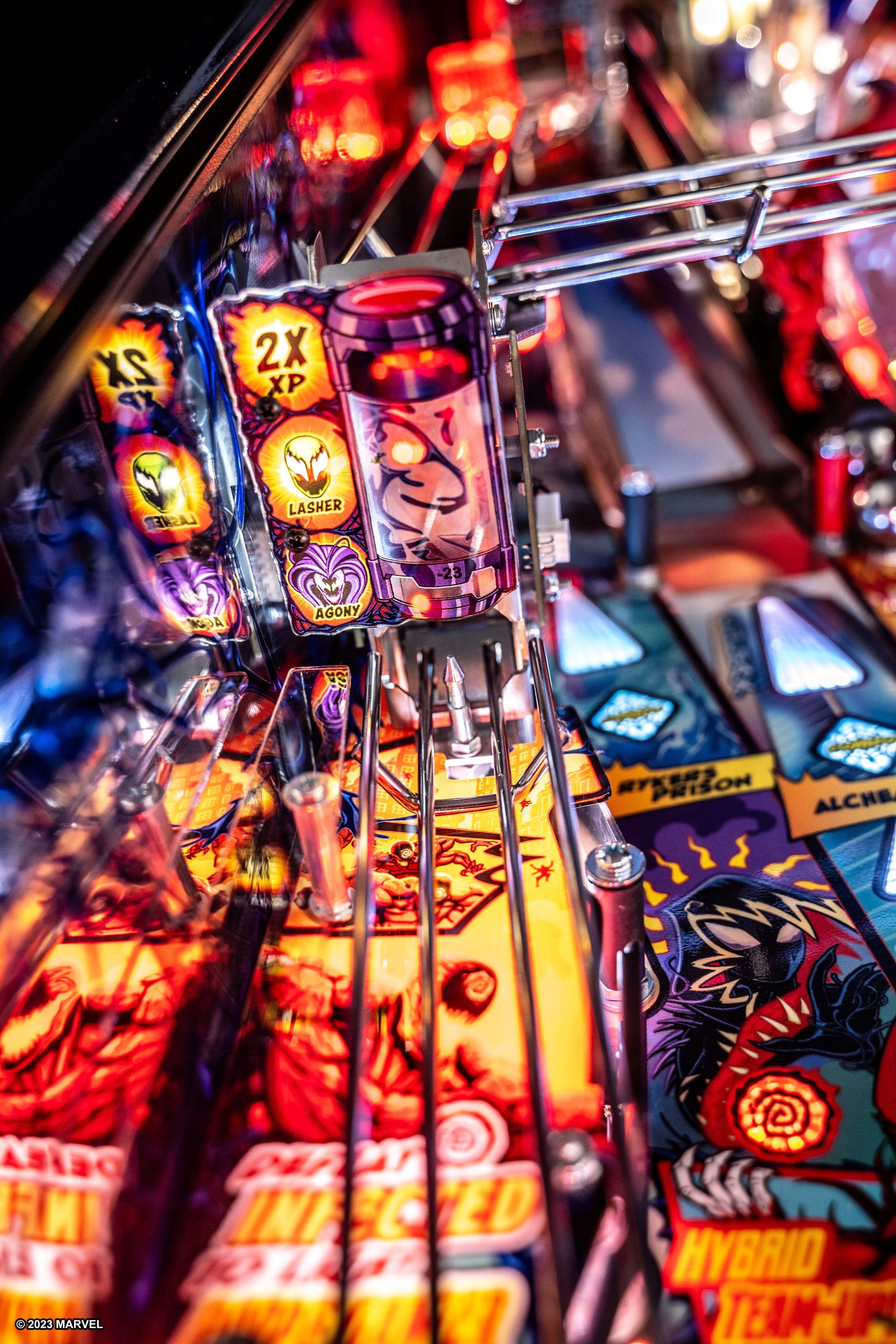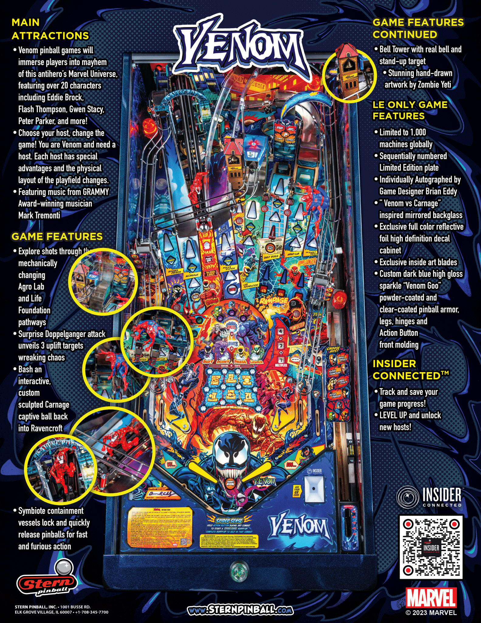 - Venom pinball games will immerse players into the marvel universe with character’s including, Eddie Brock, Flash Thompson, Gwen Stacy, Peter Parker, and more!